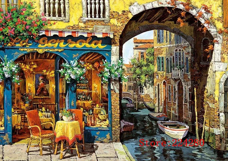 Река Кафе Магазин пейзаж рукоделие 14ct без принта ручная вышивка Аида Счетный крест наборы DIY дома
