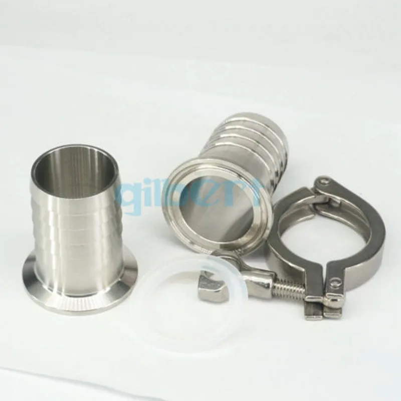 1012. Штуцер для шланга 716192532384551576376 мм x 0,5 дюйма, 1,5 дюйма, 2 дюйма, набор с тремя зажимами 304, санитарный фитинг из нержавеющей стали клеверная пива