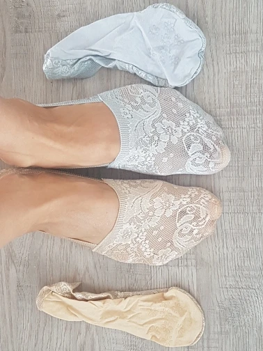 Следки отличного качества, красивые, с силиконовой полоской по краю, чтобы хорошо держались на ноге. Однозначно рекомендую.