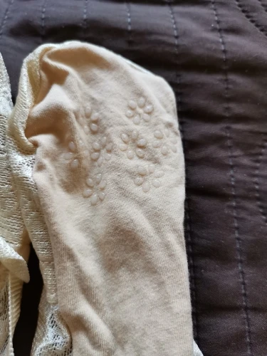Очень понравились носочки. Ткань приятная, снизу специальные антискользящие штучки. Все сделано аккуратно, ни запаха, ни торчащих ниток. Цвета как на фото продавца, на ноге держатся плотно и очень удобно. Продавец оперативно отправил заказ. В Мо пакет пришёл за 3 недели