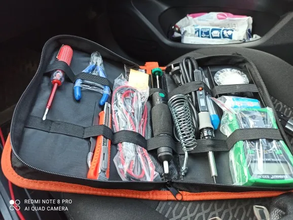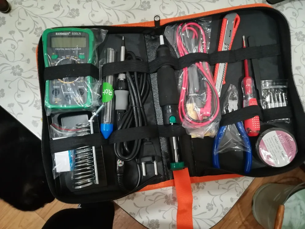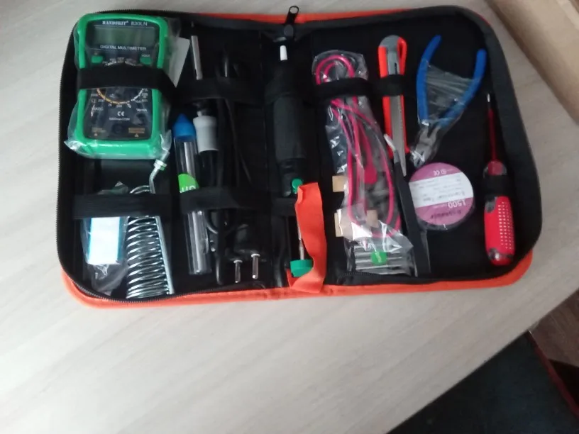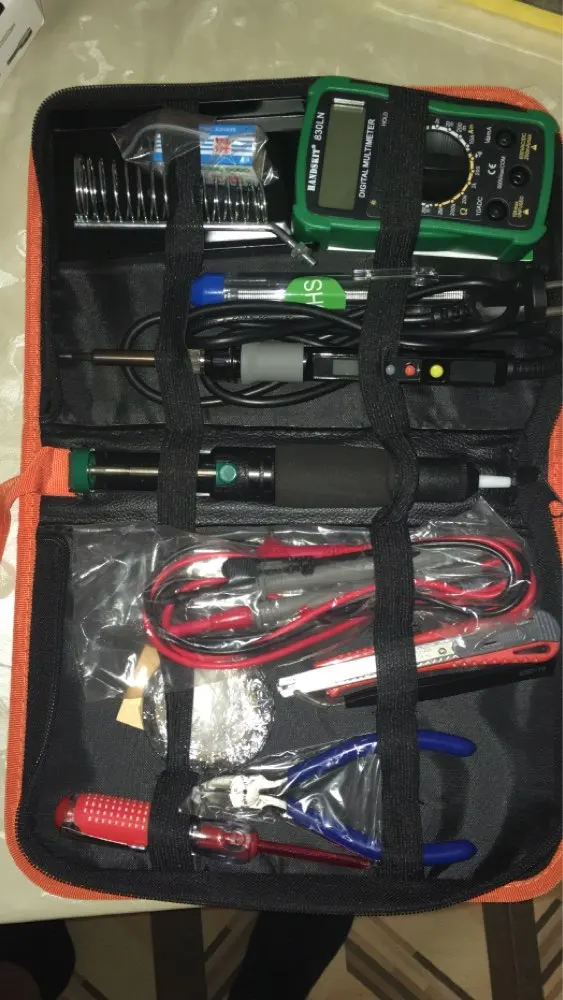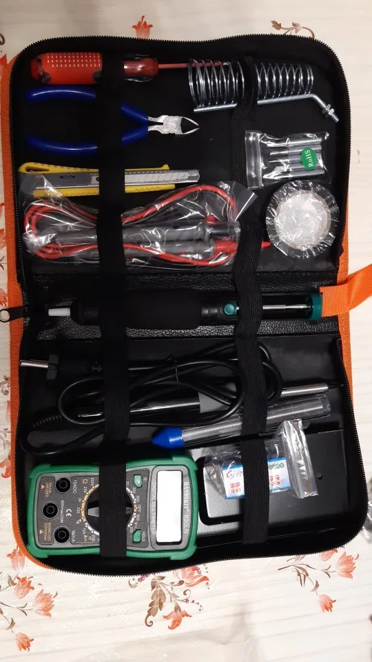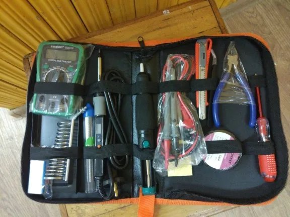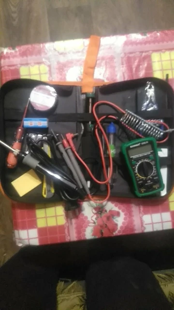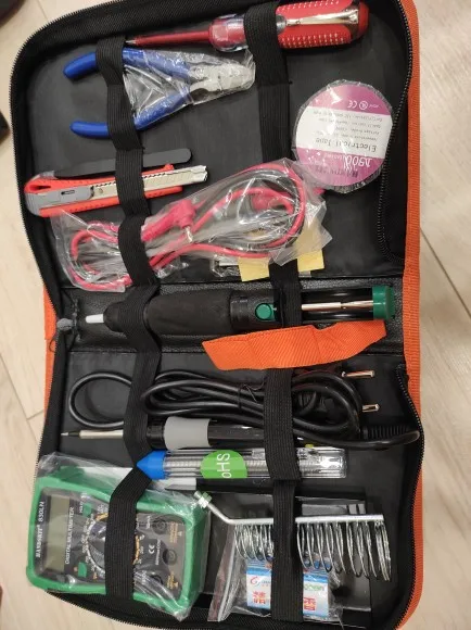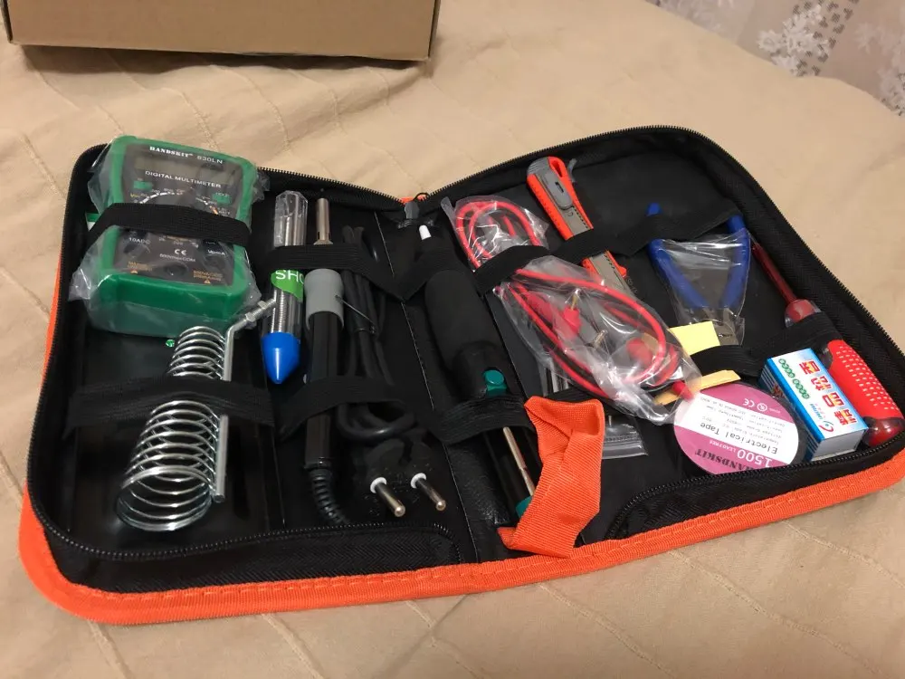 Набор пришел за 4 дня до Калуги ( заказывал с России) Качество сумки отличное, когда первый взял удивился) Набор был увесистый, не ожидал. Паяльник держать удобно, есть противоскользящая резинка, нагревается быстро, регулировку температуры не проверял, паяет отлично. Мультиметр прикольный, показатели точности не проверял т.к. нет прибора . Изолента так себе если честно, припой и канифоль нормальные, пробовал паять и показали себя хорошо. Вообщем набор стоит своих денег . Продавца советую. Отправили на следующий день P.S Будьте внимательны! Трек номер может поменяться , у меня как отправили из Москвы трек номер изменили