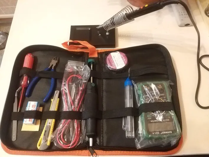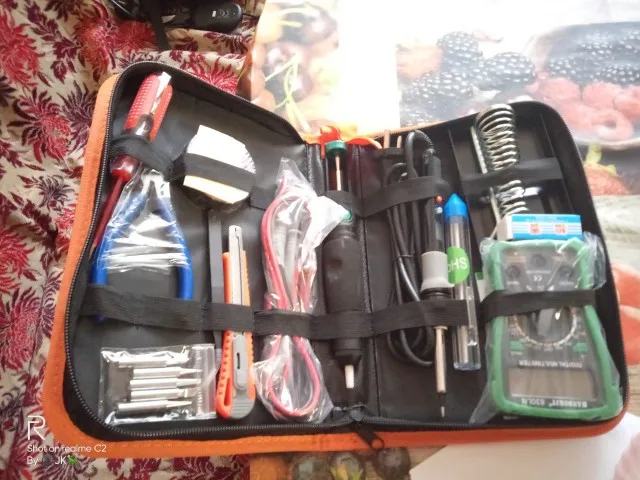 Он поставляется в коробке для защиты корпуса. Все аксессуары, которые на картинке, поставляются и выглядят хорошего качества. Я должен попробовать тестер и паяльник. Но для чехла q приносит и все q включает в себя эту отличную цену. Я рекомендую его