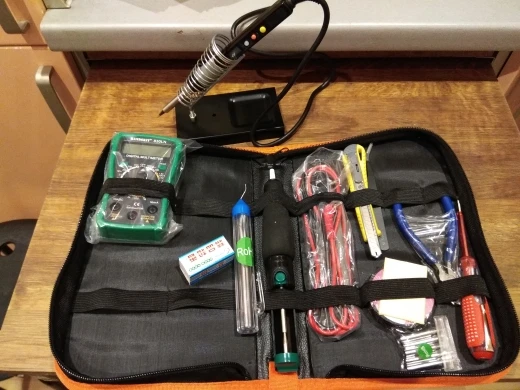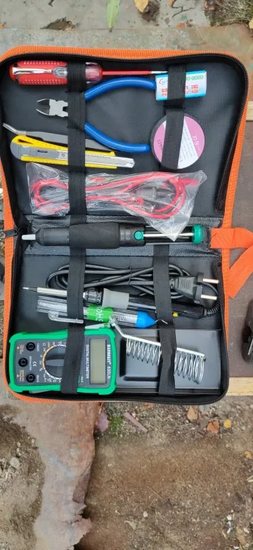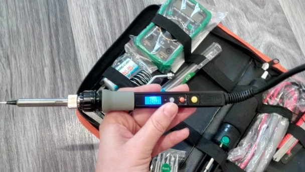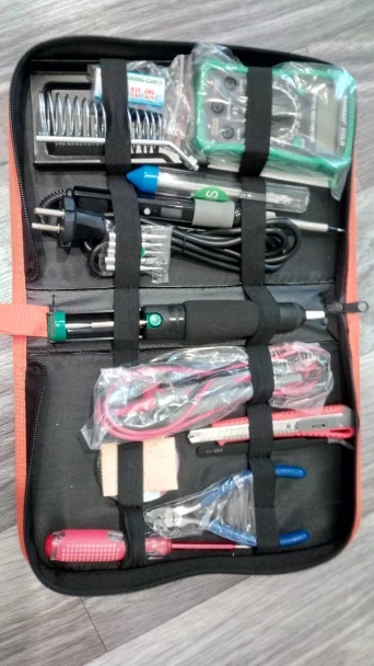 отличный набор за свои деньги, пришло быстро, дополнил своими инструментами и теперь вообще огонь, паяльник поддерживает заданную температуру и имеет кнопку включения на ручке