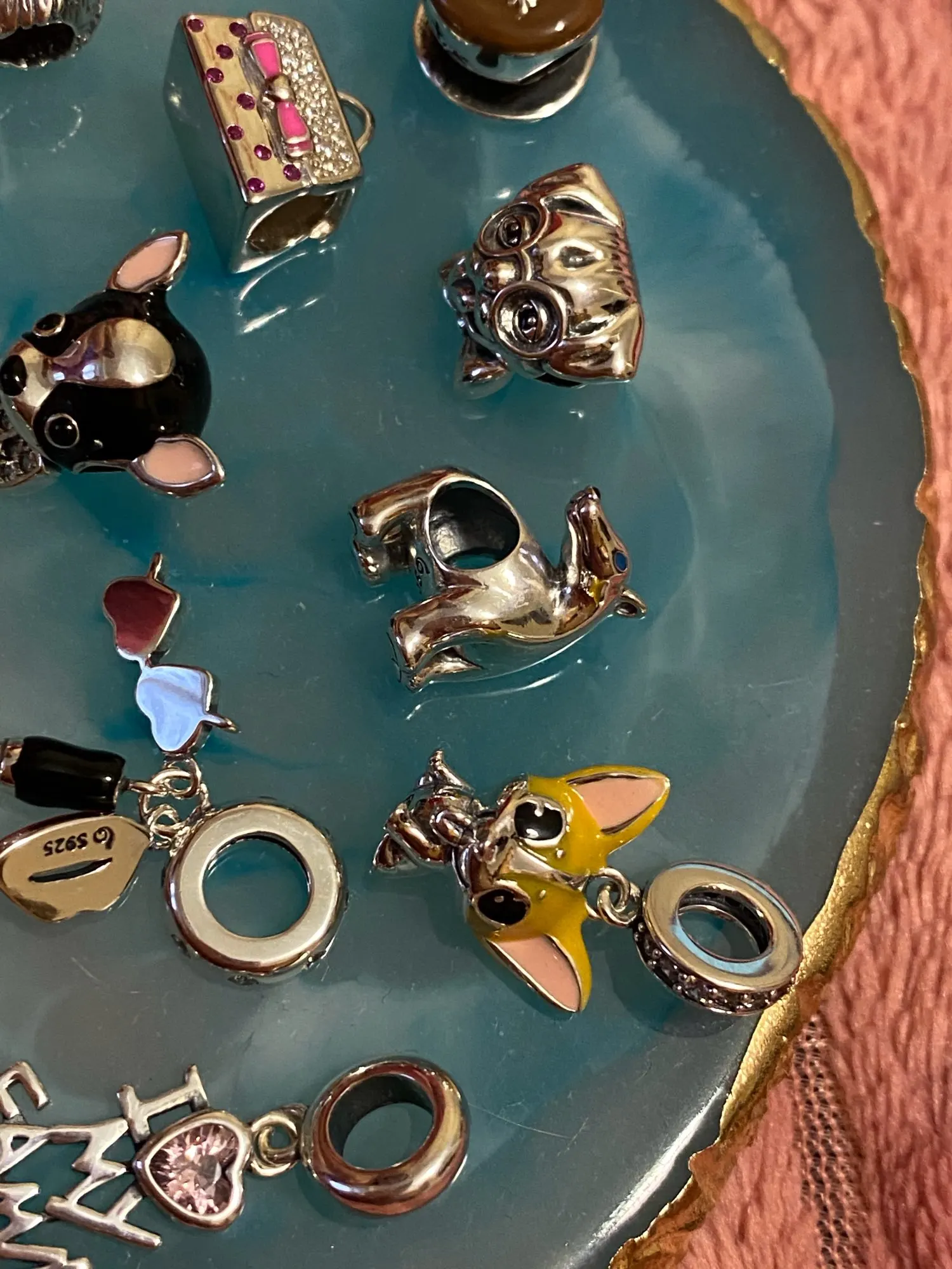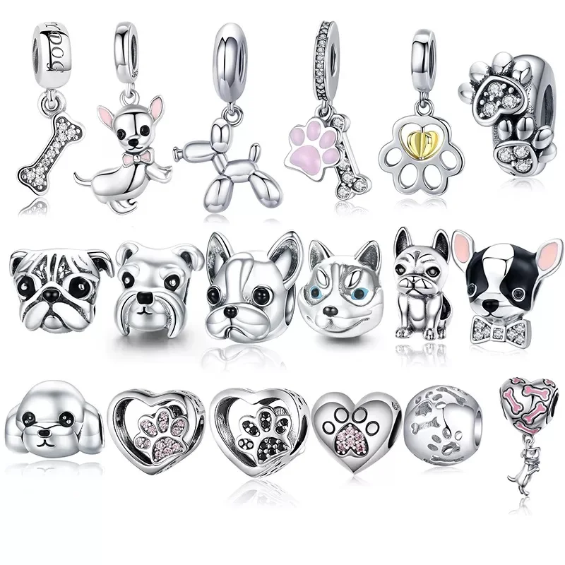 Оригинальный браслет из серебра 925 пробы с бусинами в виде французского бульдога