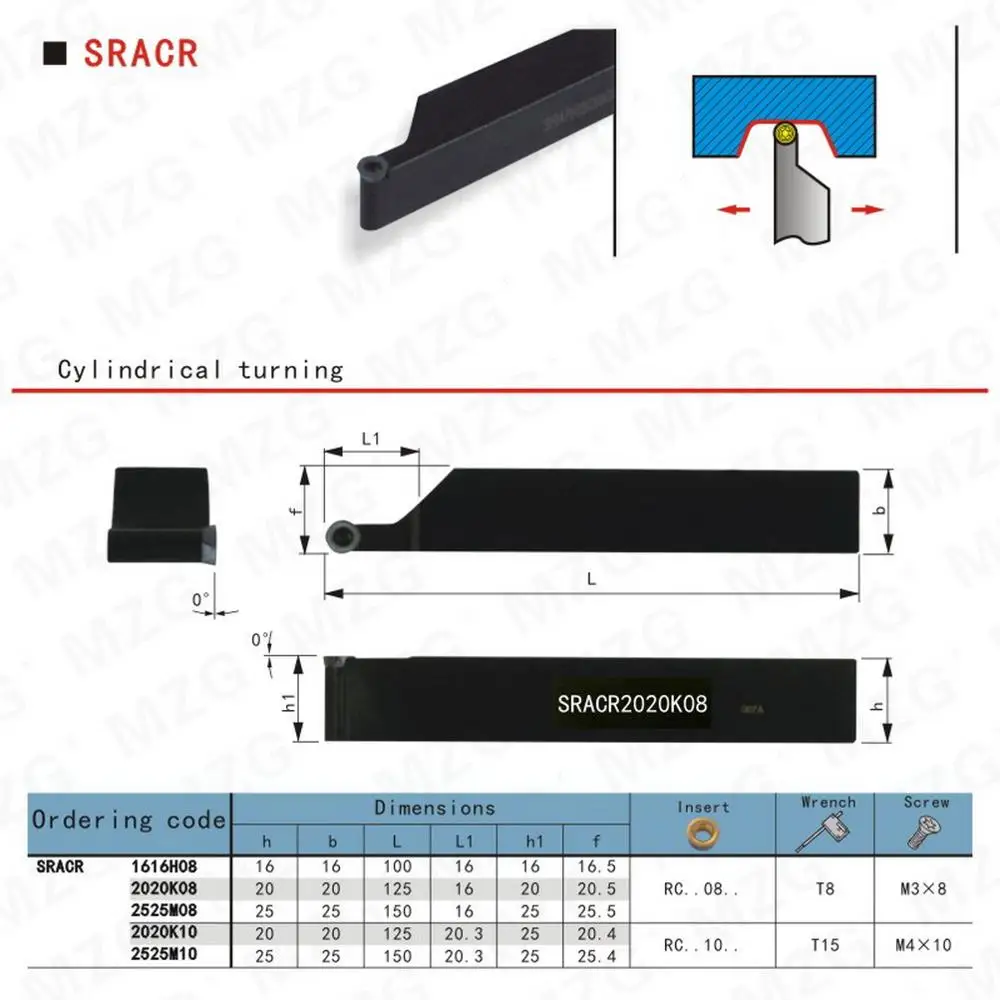 MZG 20 мм 25 мм SRACR2020K08 CNC RCMT твердосплавные вставки токарный станок для Арбор резак бар внешний расточный инструмент зажатый стальной держатель для инструментов