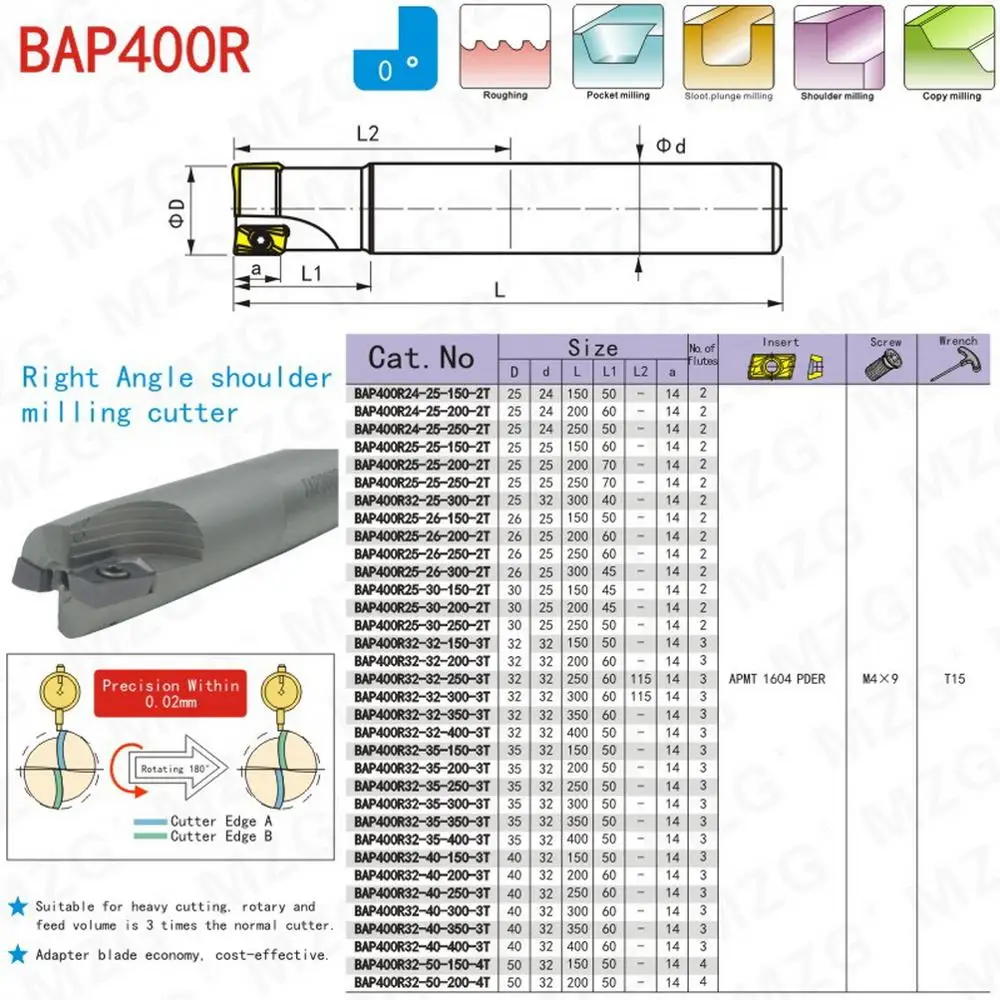 MZG BAP400 R C25 C32 CNC обрабатывающая Концевая фреза хвостовик APMT 1604 держатель плеча правый угол точность слот фреза