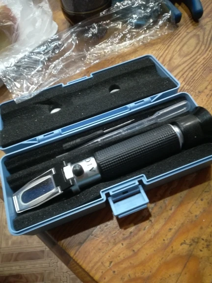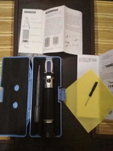 Быстрая доставка. Комплект полный: рефрактометр, пластиковая пипетка, отвёртка для калибровки и салфетка. Была небольшая царапина на измерительном стекле, но вроде, не влияет на точность измерения. Точно меряет чистые жидкости, вроде водки, коньяка. Пиво точно не меряет, показывает 15 при стандартных 4,6%. И вязкое, сладкое спиртное, вроде бальзамов тоже не меряет, зашкаливает при указанных там 45%. В остальном все отлично.