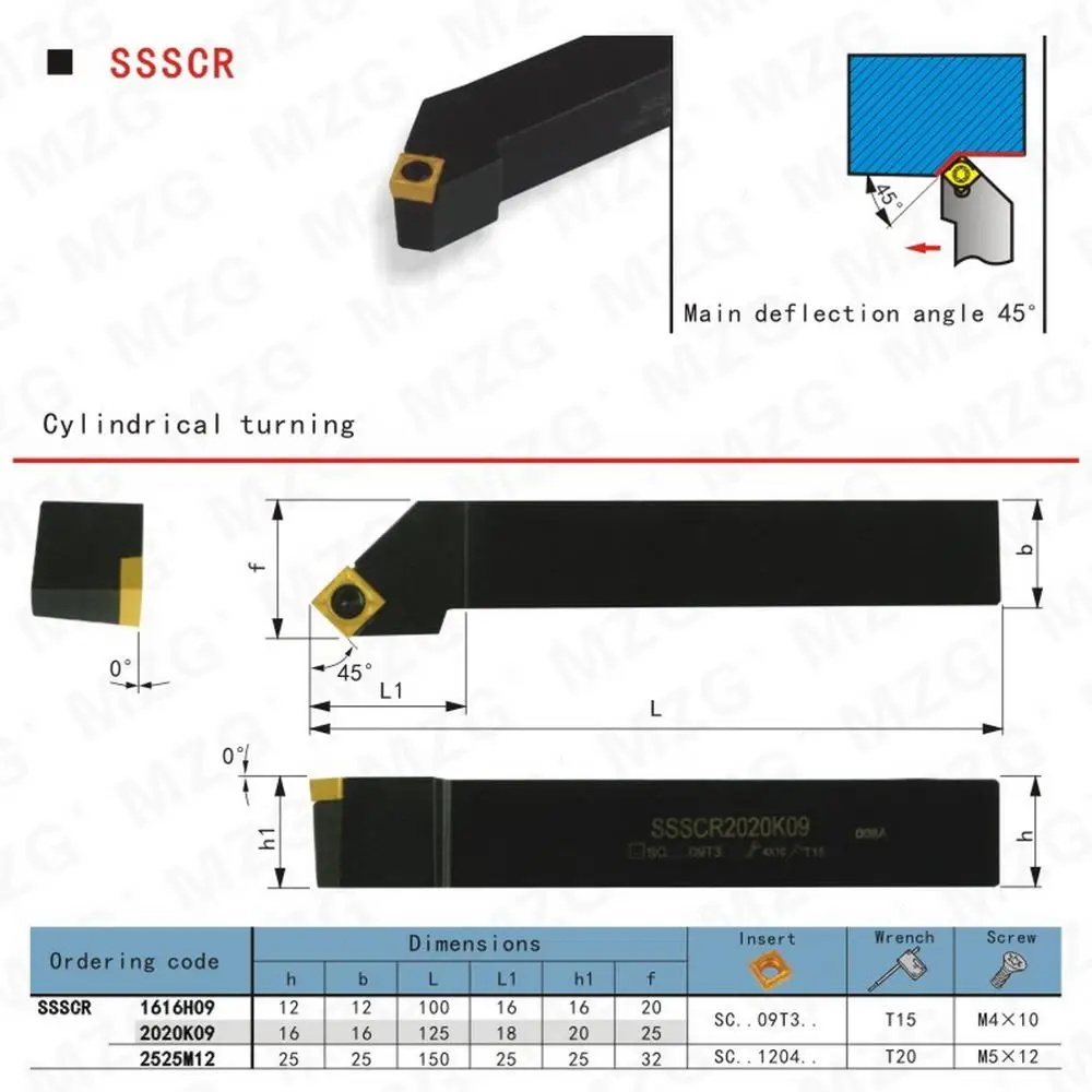 Внешний сверлильный инструмент MZG CNC 12 мм 20 мм SSSCR1616H09, токарная оправка для токарного станка, брусок для резки SCMT, твердосплавные вставки, зажатый стальной держатель инструментов