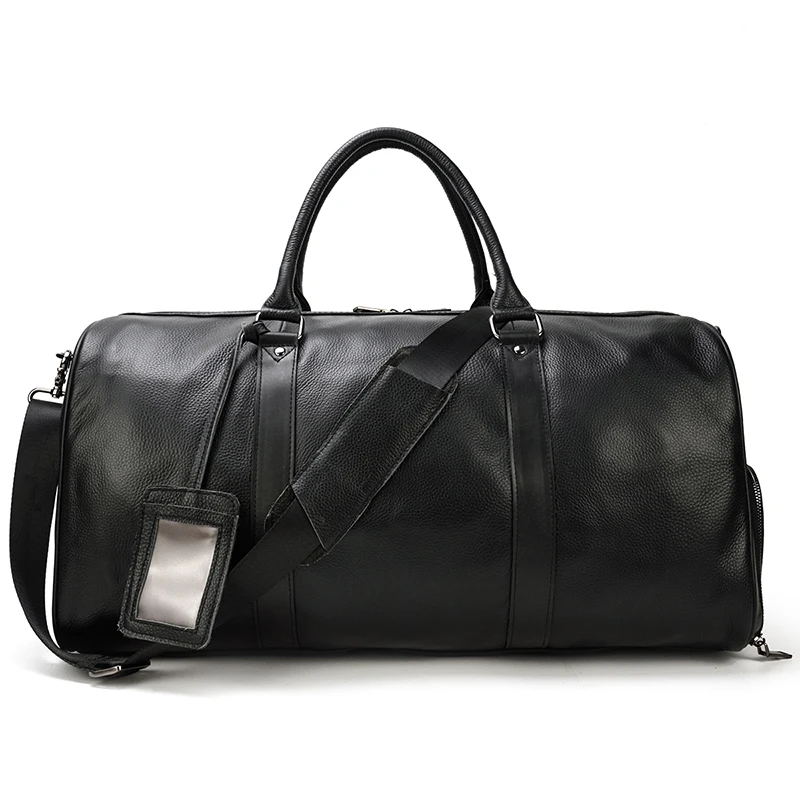 Дорожная сумка из натуральной кожи для мужчин и женщин, вместительный ранец на плечо из мягкой воловьей кожи, повседневный саквояж для путешествий, черный цвет