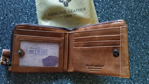 Полностью доволен продуктом. Я не эксперт, но кожа кажется подлинной из-за запаха и текстуры. У него нет производственных дефектов. Это удобно в использовании, и все мои карты подходят мне, и сколько у меня мало денег. Посылка прибыла менее чем за 2 недели и принесла классную упаковку для хранения кошелька.