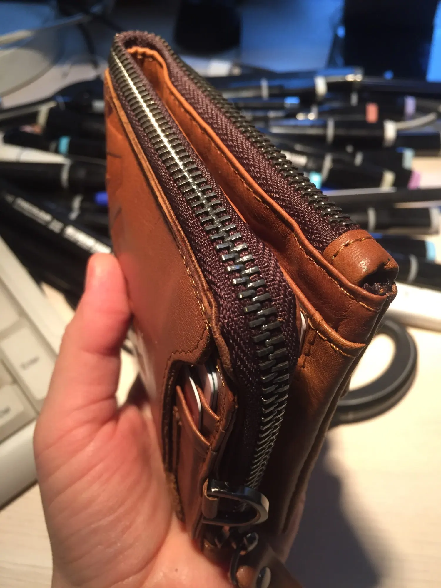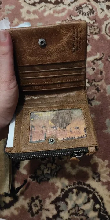 Хорошее качество, Кожа приятно пахнет! Только минус в том, что слоты для карт немного узкие, и мне нужно было вручную растянуть их, чтобы мои карты подходили, но в целом отличный кошелек.