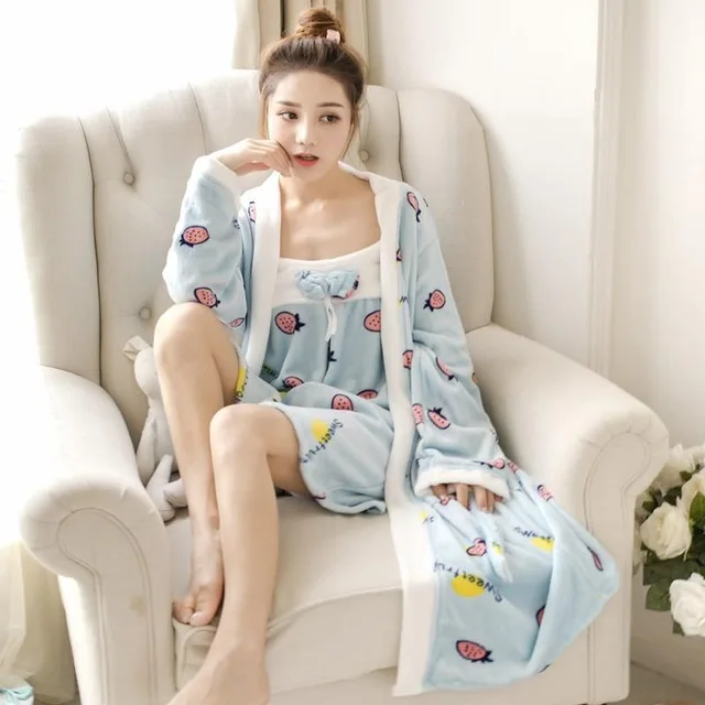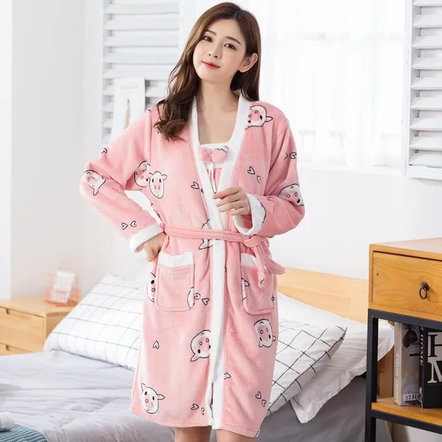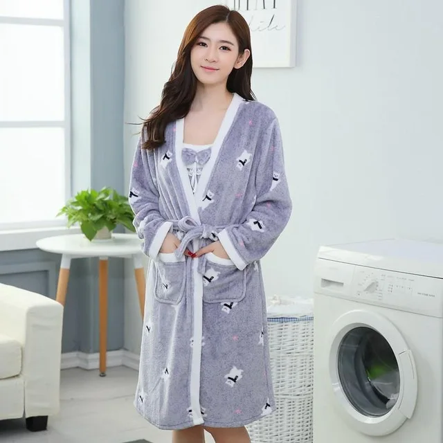 Халат фланелевый женский зимний, на флисе, 2 шт.