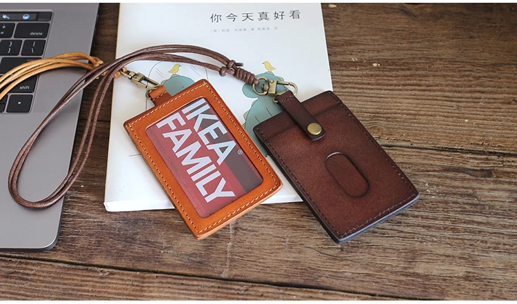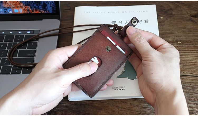 Держатель для удостоверения личности, для офисной работы, первый слой кожи, выдвижной шнурок, ремешок на шею, автобусная кредитница, мини-кошельки