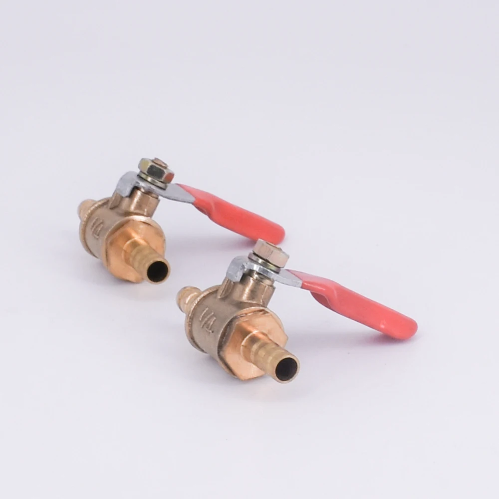 Латунный шаровой кран с зазубриной для шланга 6 мм, отверстие 57 PSI, 7 мм, с красной ручкой