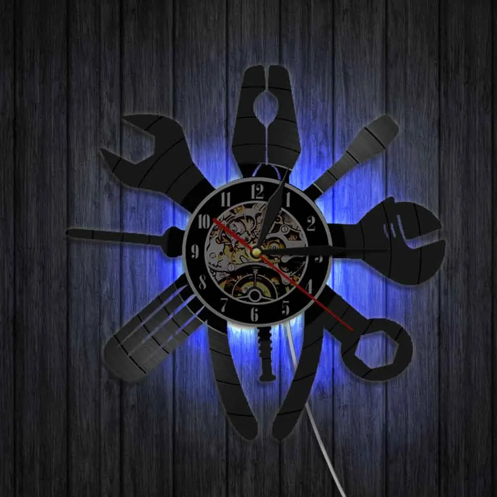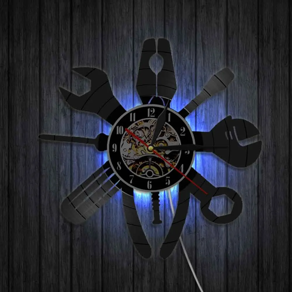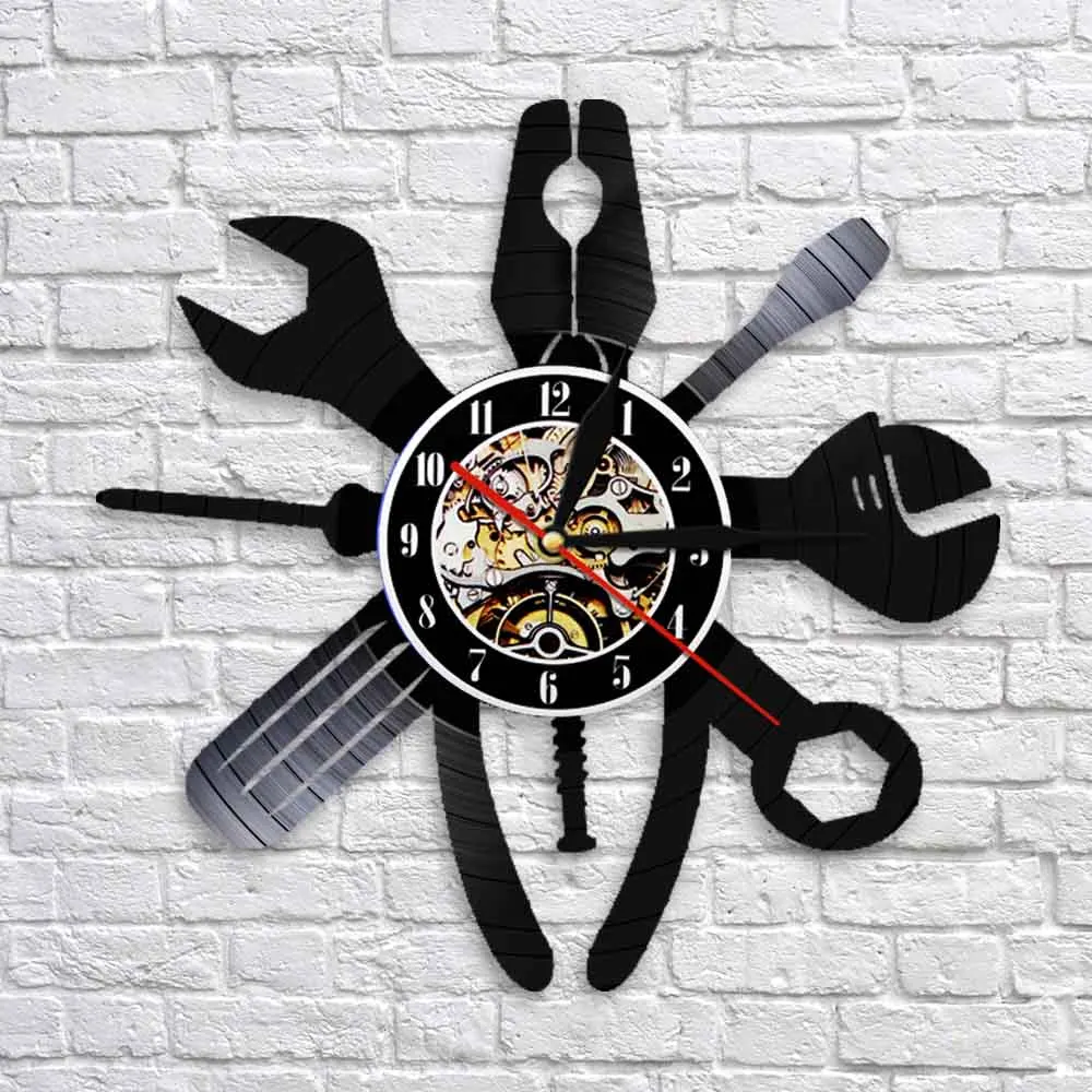 Механические часы в стиле ретро, настенные часы с альбомом, современный дизайн, инструменты для автомобильного салона, гаража, виниловые часы с записью, украшение для мужской пещеры для авторемонта