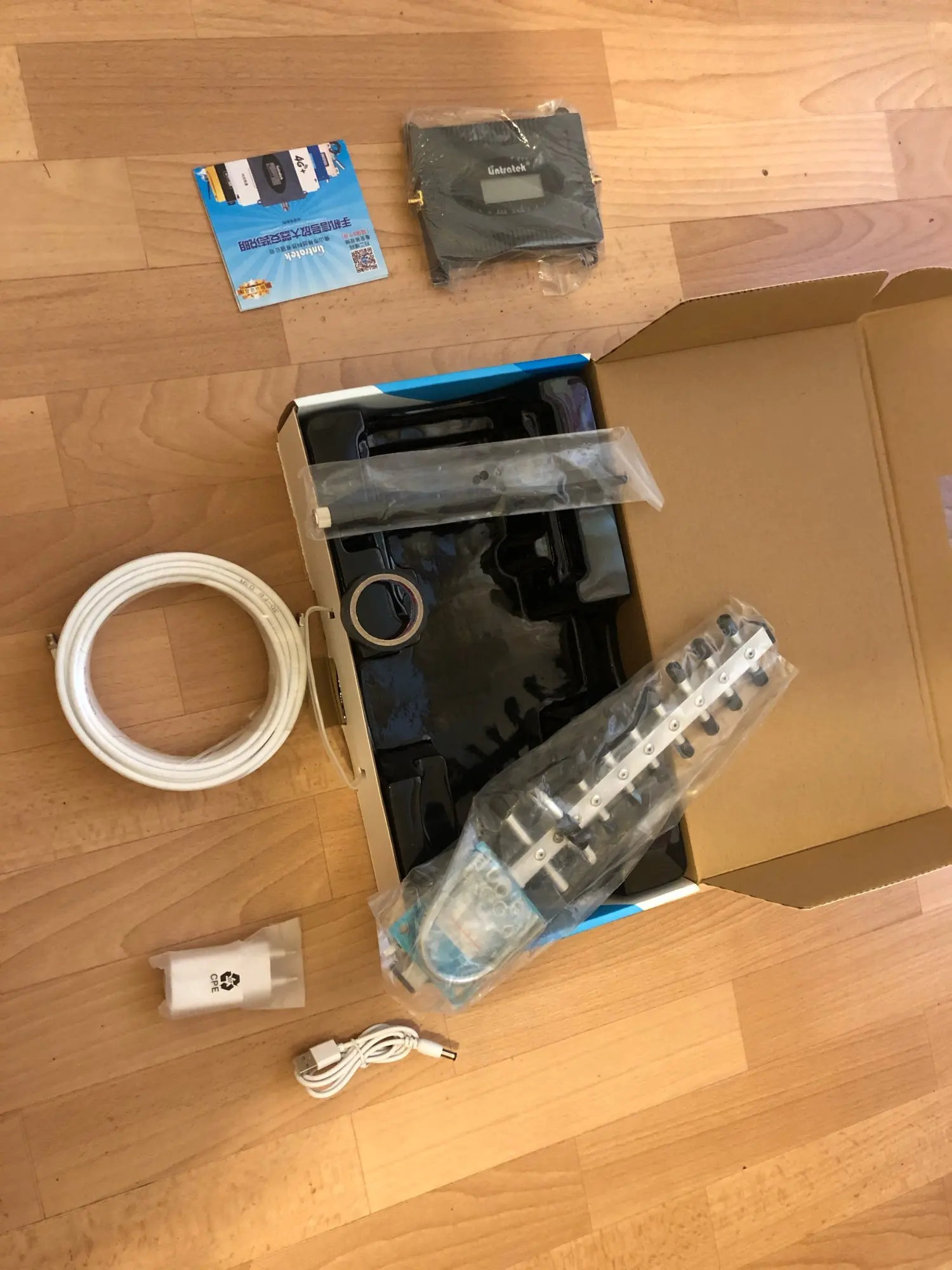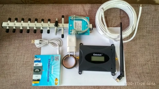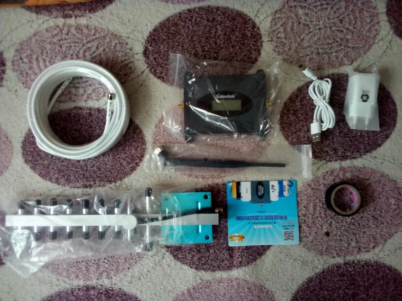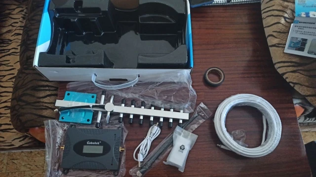 Товар пришёл довольно быстро, так как заказывал в России. Упаковано хорошо, коробка слегка помята, но внутри всё в целости. Полная комплектация + небольшая обмотка изоленты в подарок. В работе не проверял, репитер после подключения к сети работает. Как установлю антенны, отпишусь.