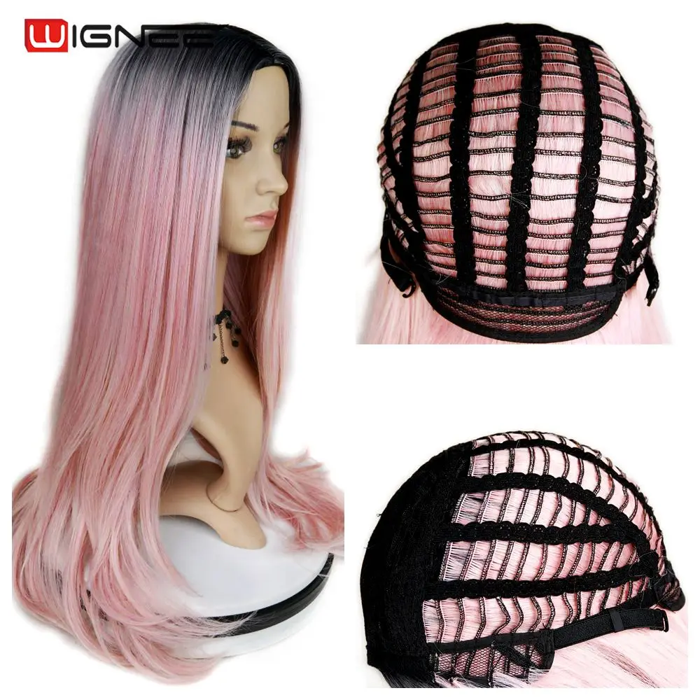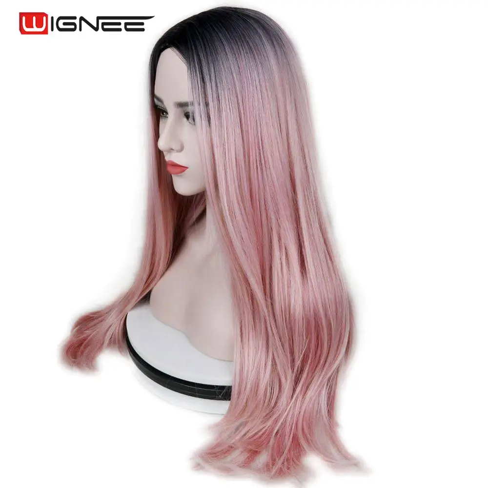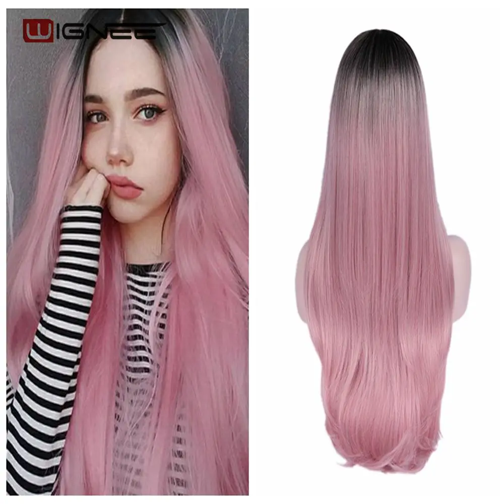 Парик Wignee для женщин, Длинные термостойкие прямые искусственные волосы из синтетического волокна, розовыесерыебез клея, для косплея, натуральные волосы с эффектом омбре