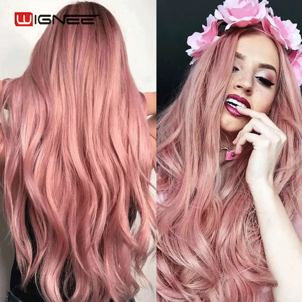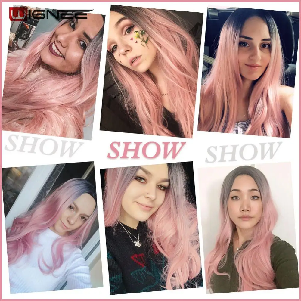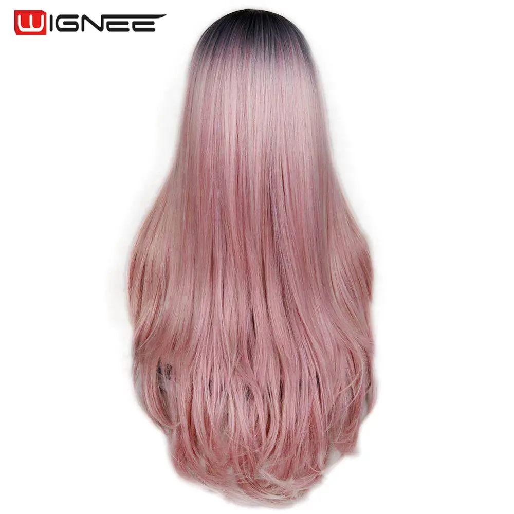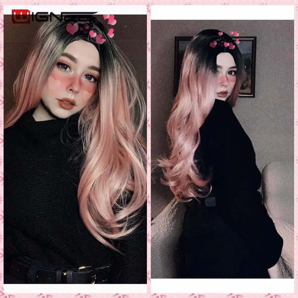 Парик Wignee для женщин, Длинные термостойкие прямые искусственные волосы из синтетического волокна, розовыесерыебез клея, для косплея, натуральные волосы с эффектом омбре