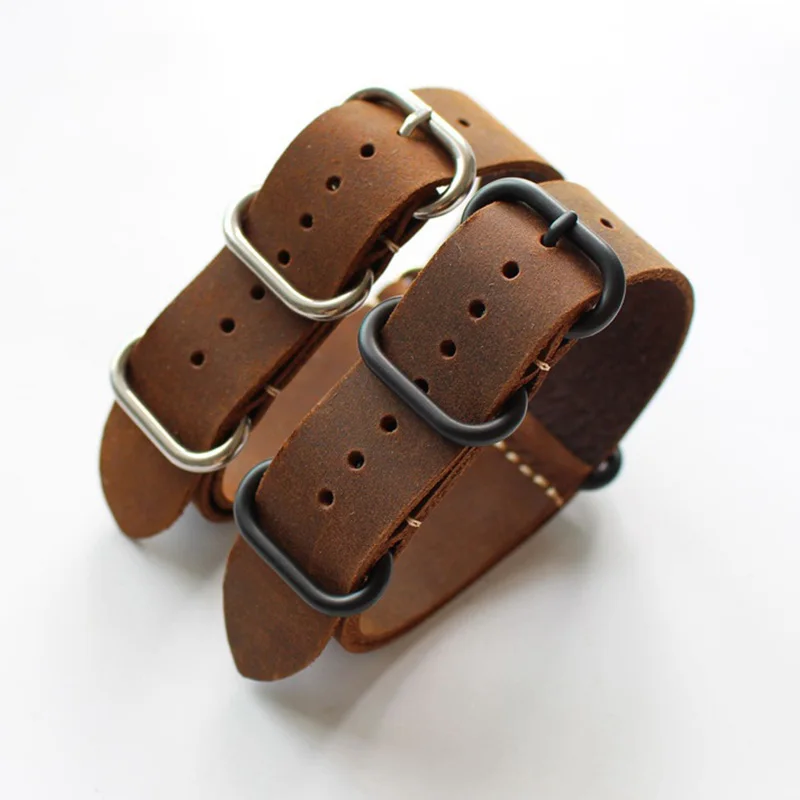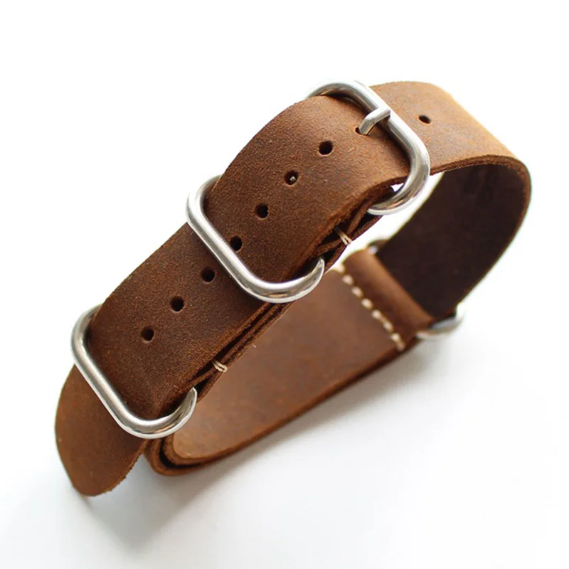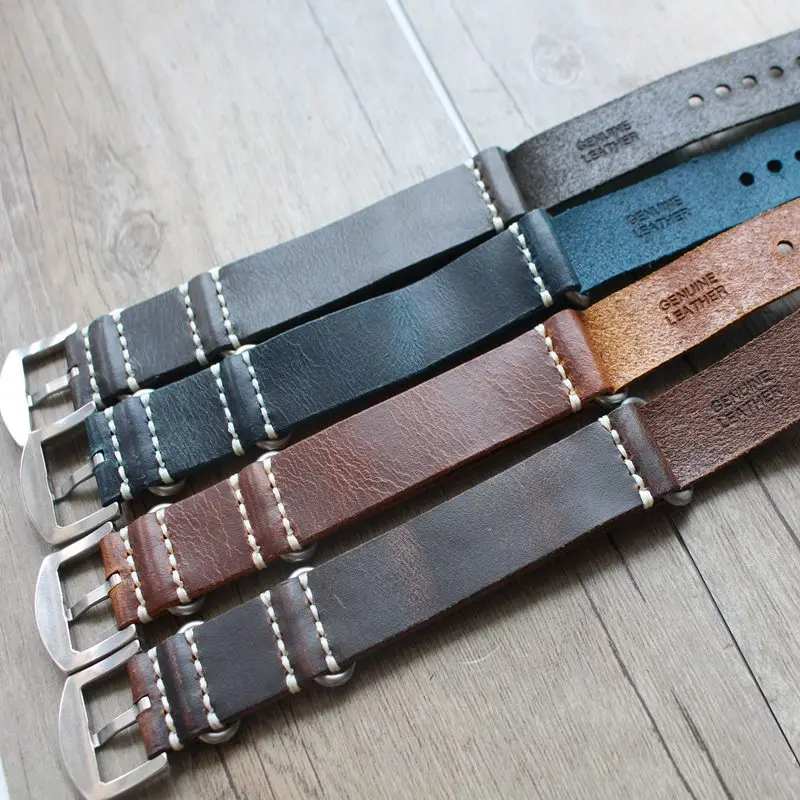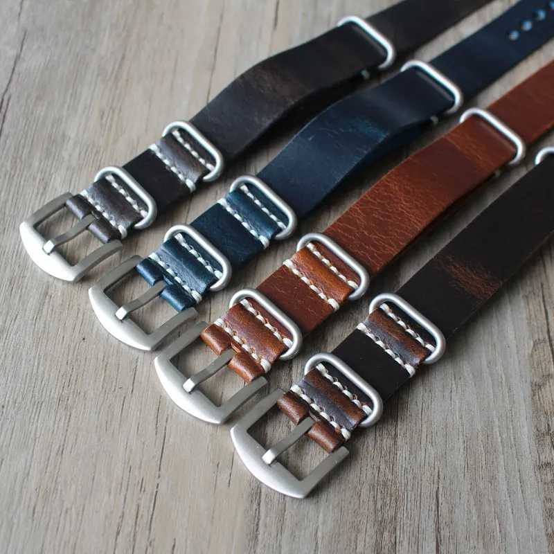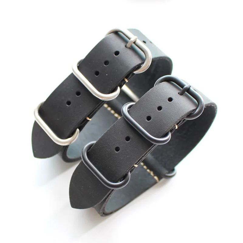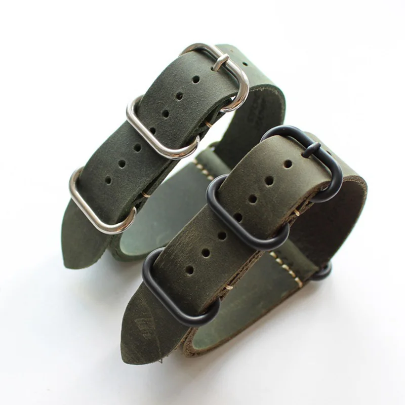 Ремешок из натуральной кожи для наручных часов, черный зеленый коричневый желтый браслет в стиле НАТО с черной пряжкой, серебристая пряжка, 18 мм 20 мм 22 мм 24 мм 26 мм