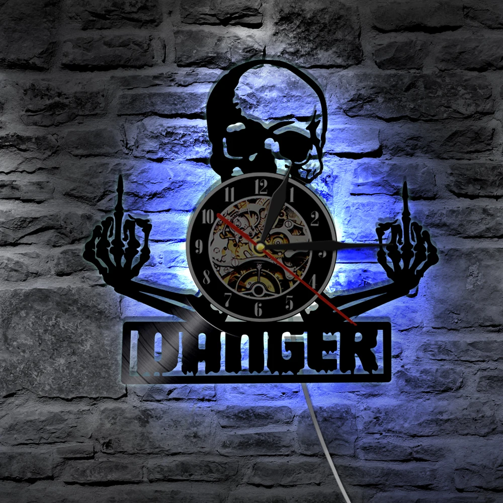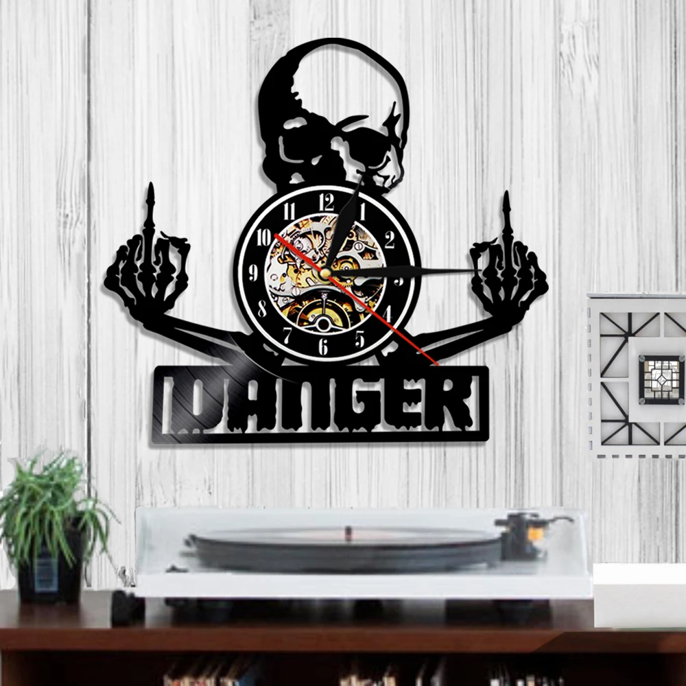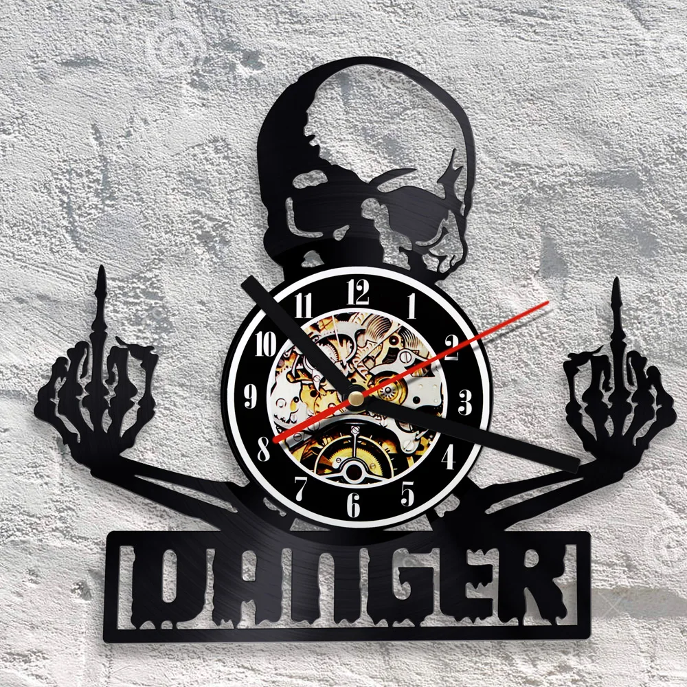 Настенные часы с изображением черепа на среднем пальце, готические панковские ретро-часы-скелетоны в стиле ретро, домашний декор, подарок на Хэллоуин