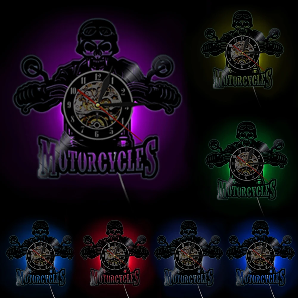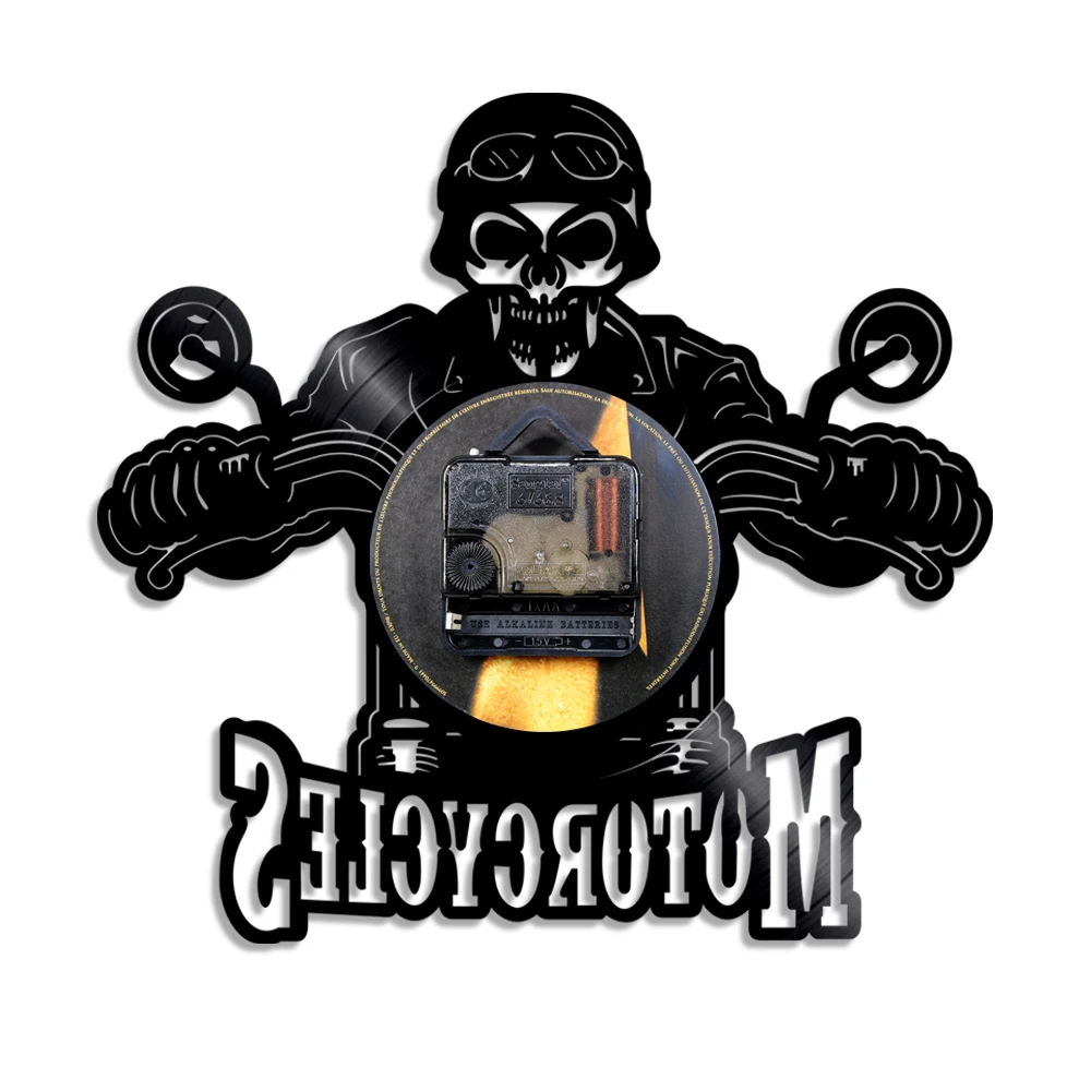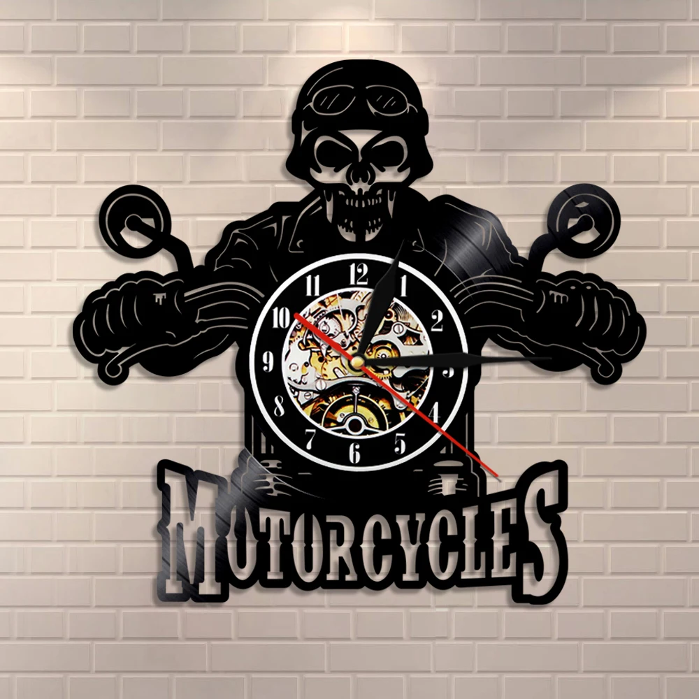 Настенные часы с виниловой пластиной, мотоциклы, Череп, гонщик, механик, знак, привидение, Чоппер, украшение на стену для Хэллоуина