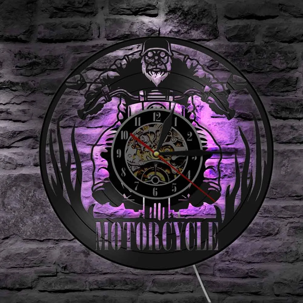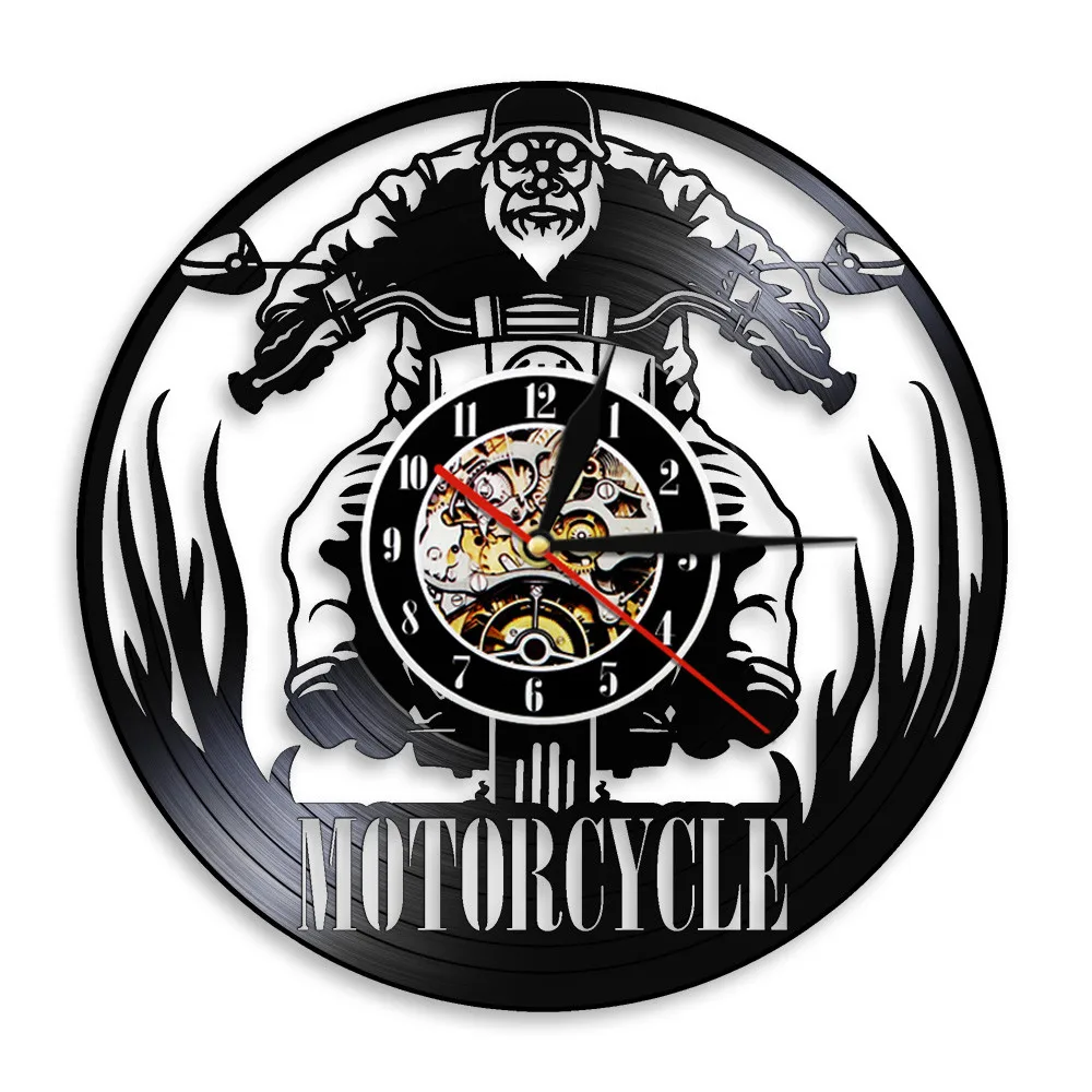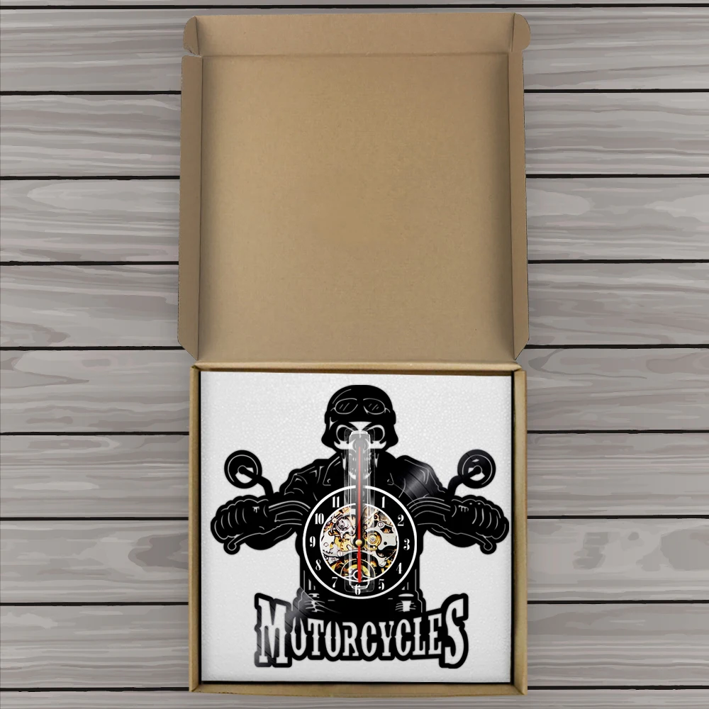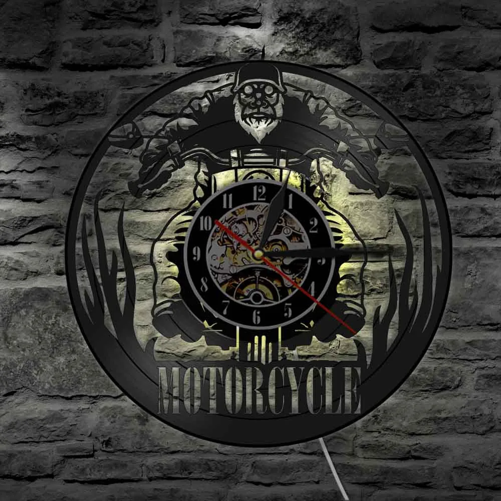 Настенные часы с виниловой пластиной, мотоциклы, Череп, гонщик, механик, знак, привидение, Чоппер, украшение на стену для Хэллоуина
