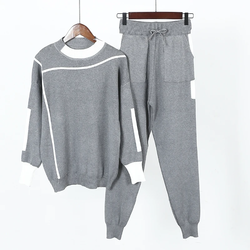Женский спортивный костюм ALPHALMODA из 2 предметов, брюки и свитер в полоску и джемпер, зимний повседневный комплект из 2 предметов, 2017