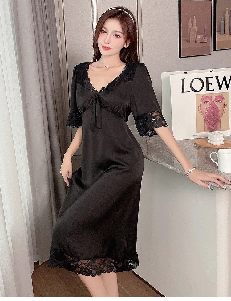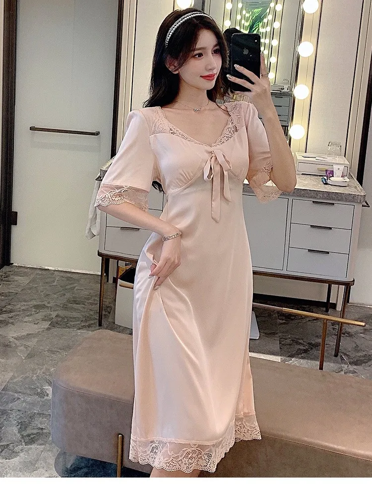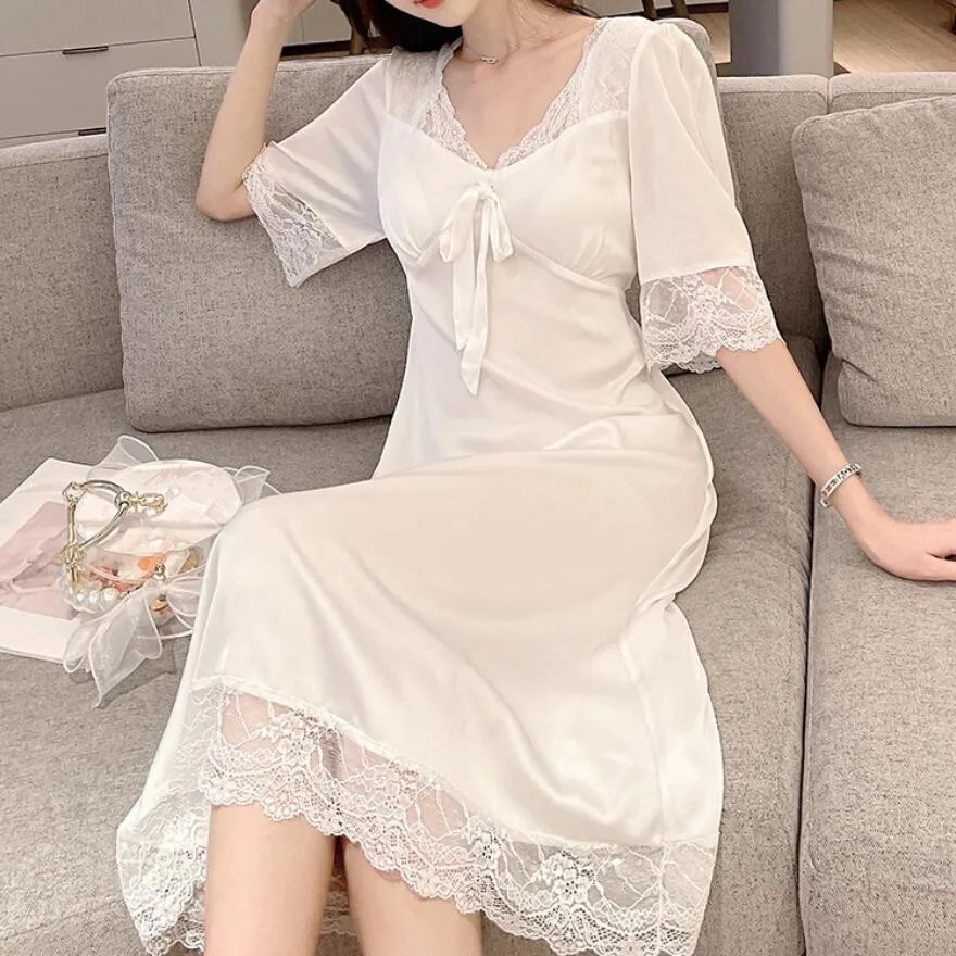 Ночная сорочка Женская длинная из вискозы, пикантная одежда для сна, белый кружевной домашний халат в стиле пэчворк, свободная ночная рубашка, весна-лето