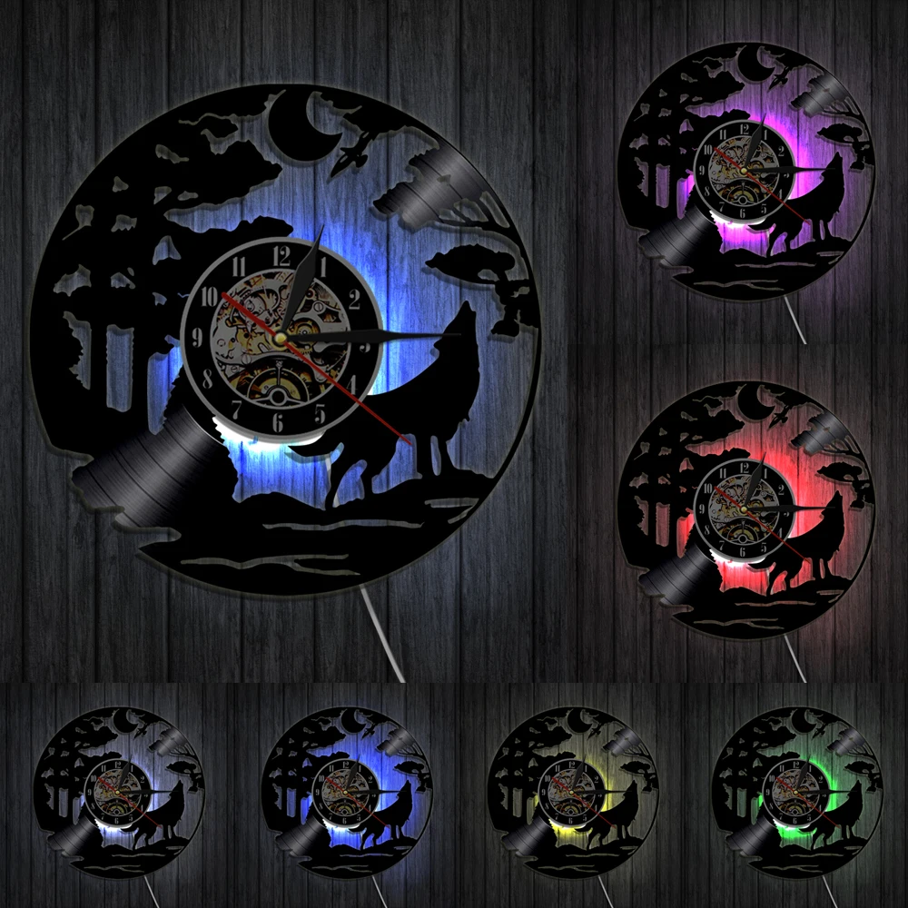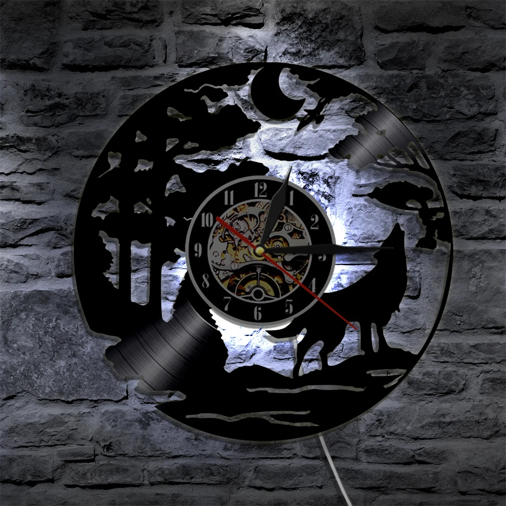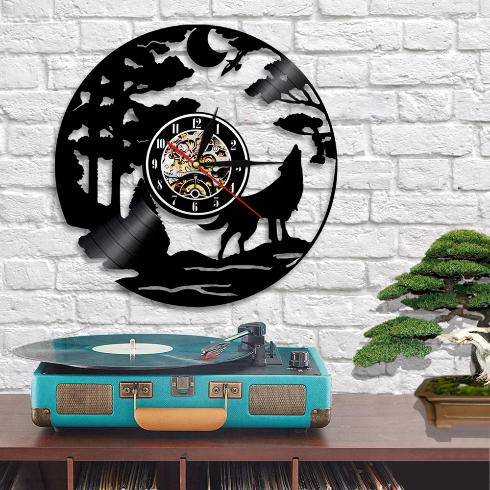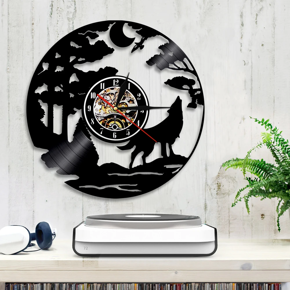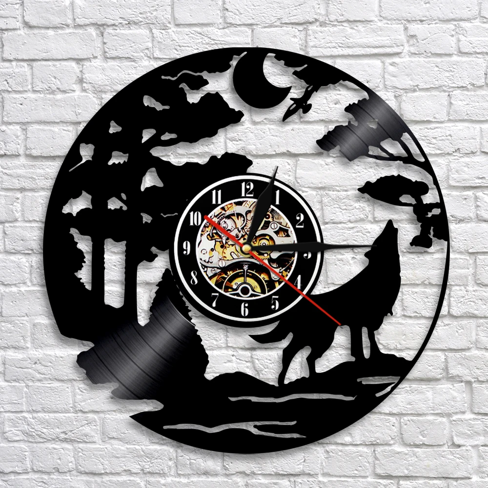 Настенные часы Howling Wolf с виниловой пластиной, альбом с лазерной резкой волка, дисков CD, часы для длительного воспроизведения, подвесные настенные украшения