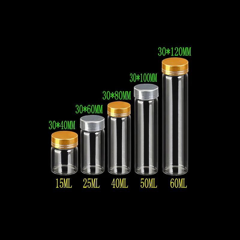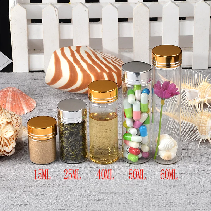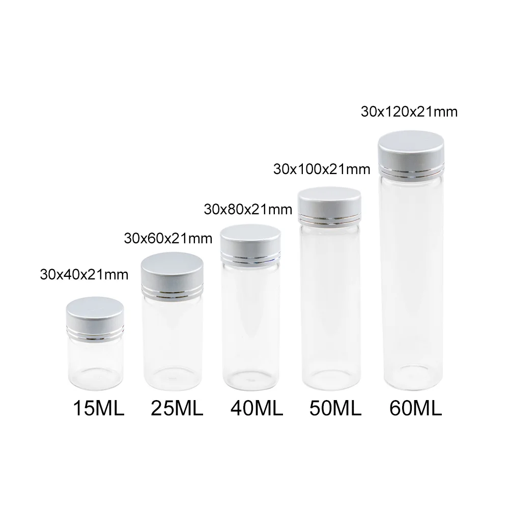 Контейнеры для банок стеклянные бутылки с серебристым металлическим колпачком стеклянные бутылки 15 мл 25 мл 40 мл 50 мл 60 мл упаковка ювелирных изделий