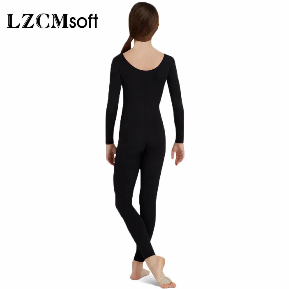 LZCMsoftчерный комбинезон из спандекса с длинными рукавами для девочек; Боди без пятки с глубоким вырезом; Детская нейлоновая одежда для гимнастики и танцев