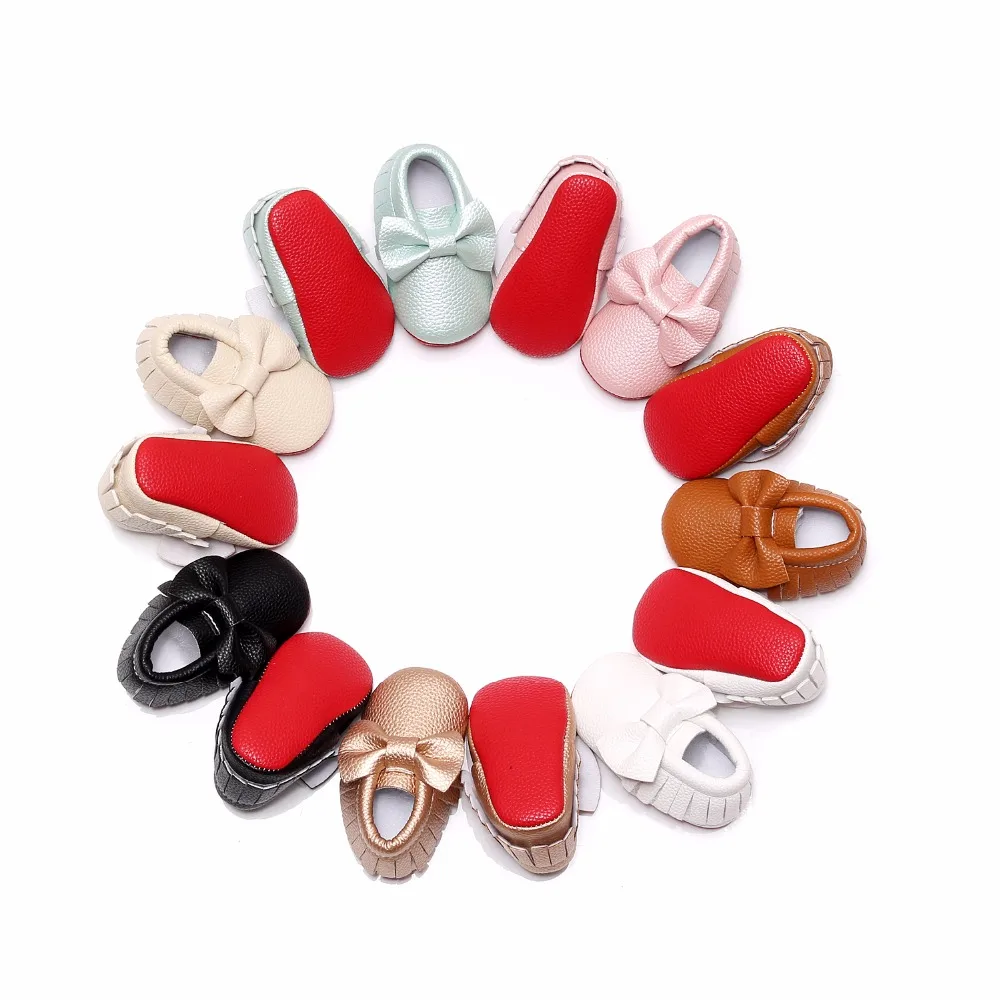 Новинка, красная подошва, искусственная кожа, для новорожденных Для маленьких мальчиков и девочек одежда для маленьких детей; Мягкие Мокасины обувь Bebe бахрома с мягкой подошвой, нескользящие носки для малышей, обувь для колыбельки