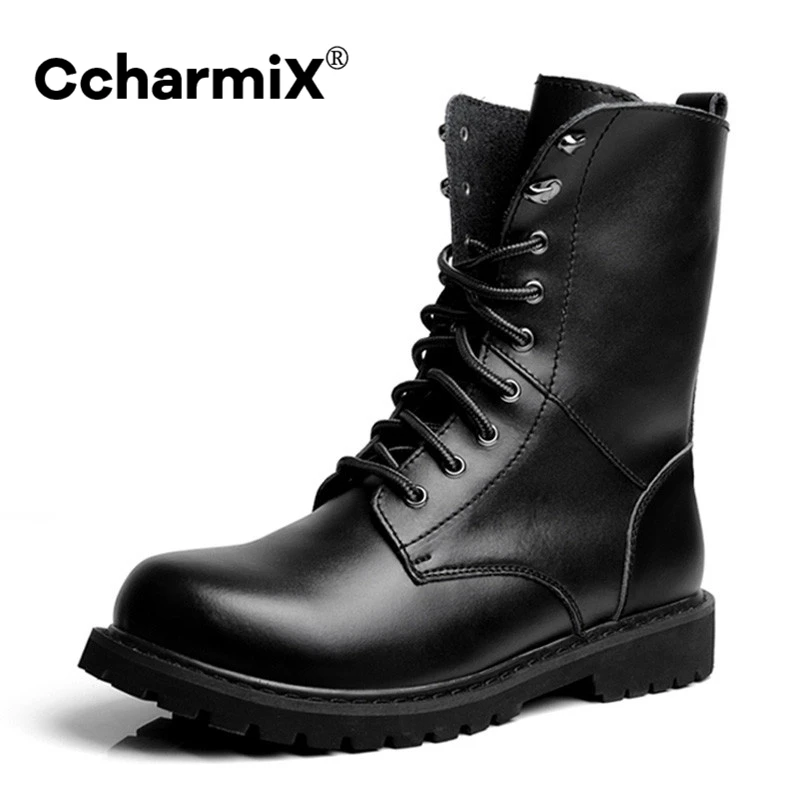Мужские мотоциклетные ботинки CcharmiX, уличные армейские ботинки до середины икры, мужские кожаные военные тактические ботинки для пустыни, черные боевые ботинки на зиму