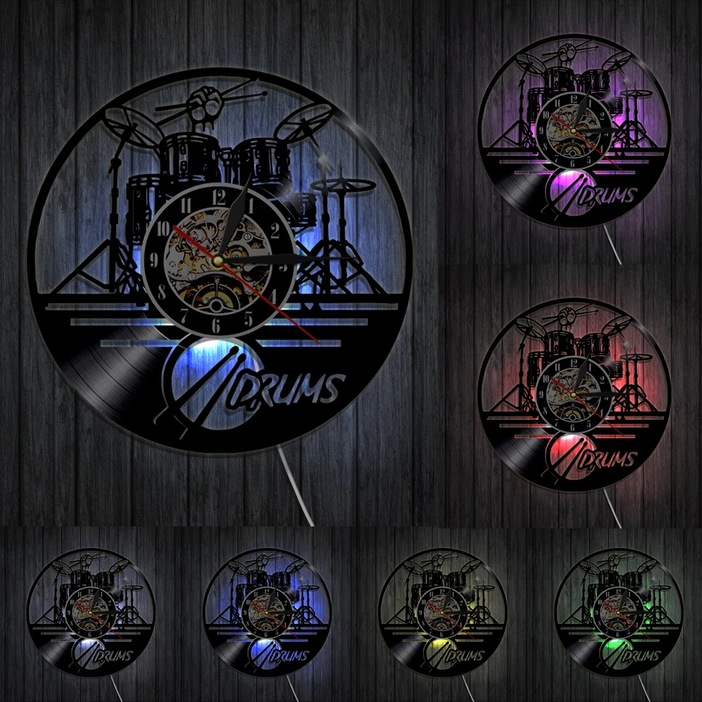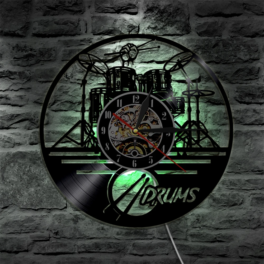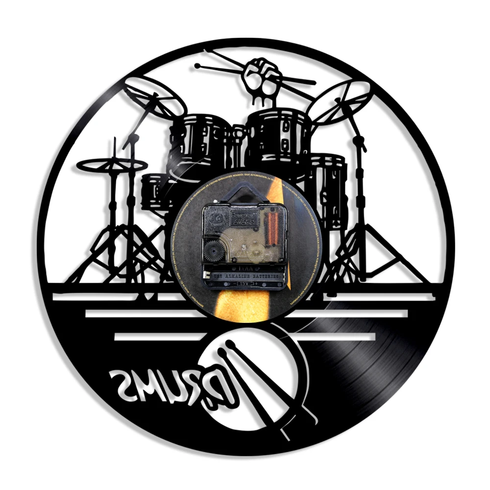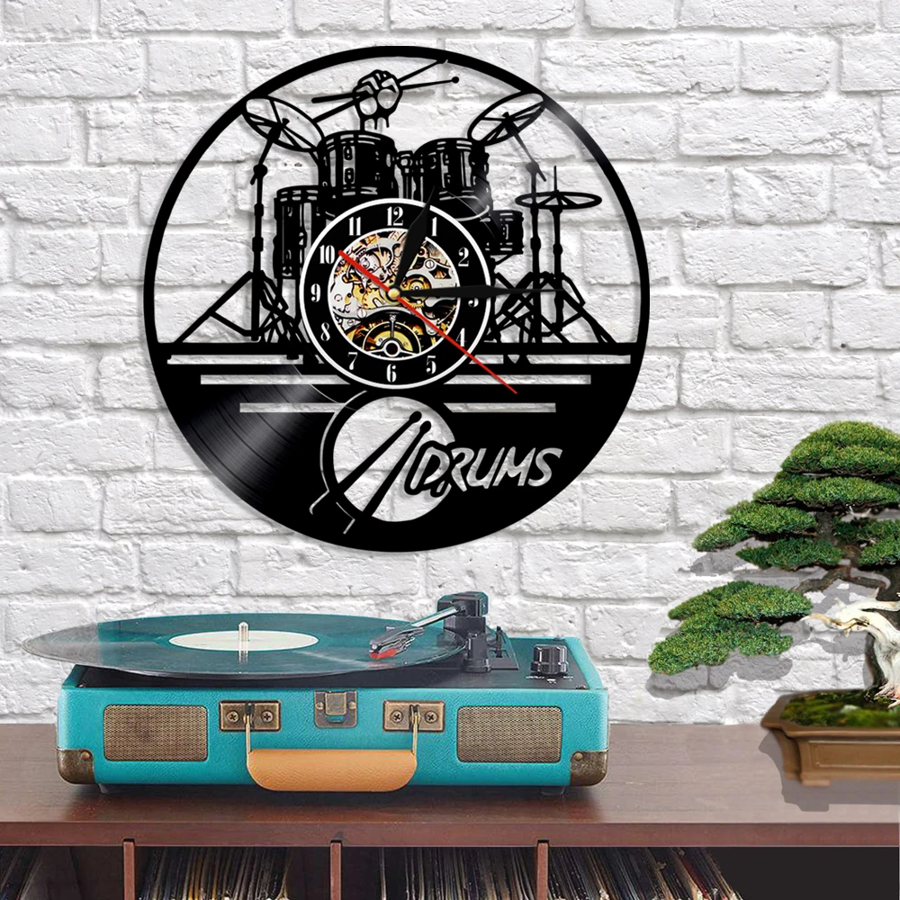 Гитарные барабаны, рок-группа, музыкальная студия, Виниловая пластинка, настенные часы, барабан, барабанные часы, Longplay, настенные часы, музыкальное искусство, домашний декор