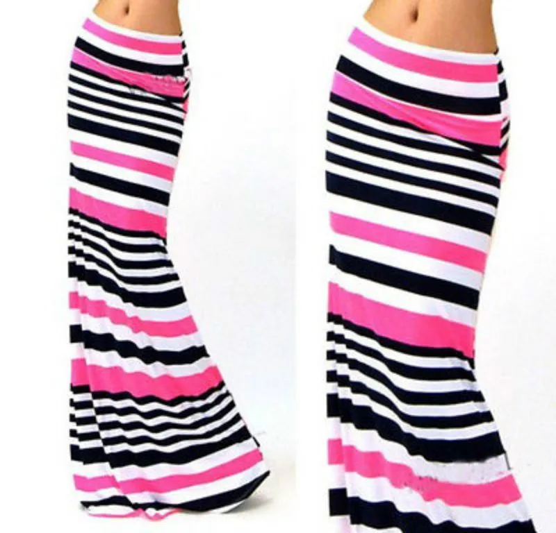 Женская длинная юбка в полоску, стрейчевая юбка с длинным майка в цыганском стиле, Размер SMLXL