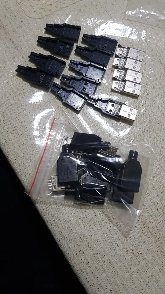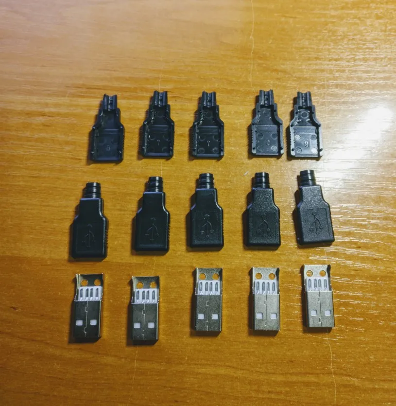 10 шт., 4-контактный разъем USB Type A типа Мама и папа с черной пластиковой крышкой, USB-разъем (5 шт. Папа + 5 шт. мама)