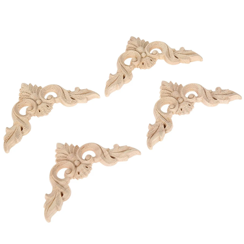 Деревянная резная угловая Накладка для мебели, украшения для дома, Неокрашенная аппликация, 8 х8 см, 4 шт.