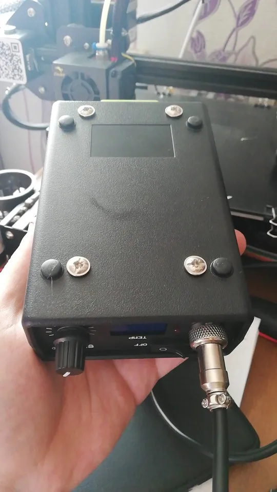 Доставка в рб больше 2 месяцев. Комплект в прицепе собрал быстро, работает как положено. Единственное что блок питания в пластиковый корпус немного большой (возможно в алюминиевой будет нормально). Благо есть 3D принтер и все переделал как надо. На фото видно что жало после 2 нагреваний стало чернеть.