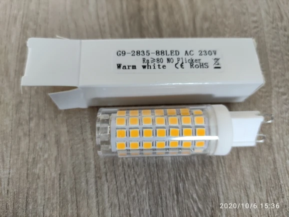 Лампы хорошего качества. На мой взгляд, теплый белый-это довольно естественный цвет, это не мешает глазам. Лампы тускнеют очень красиво, почти до конца. Яркость ламп 6 Вт (фактическая Измеренная мощность 4 Вт) сопоставима с галогенной лампой 40 Вт.