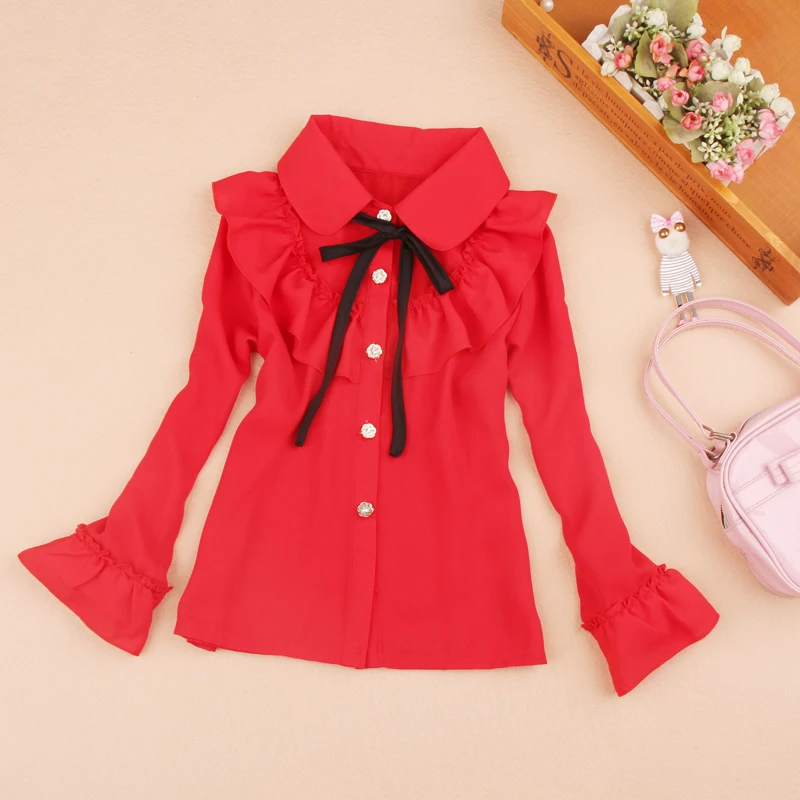 Осенняя детская одежда, блузка для девочек, детская одежда, школьные блузки для девочек, детская шифоновая рубашка с милым бантом, 2 вида цветов От 2 до 16 лет, 2019