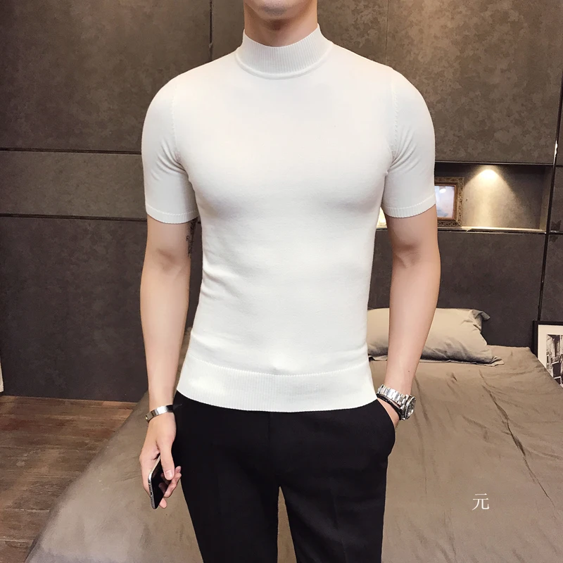2020 модный свитер с коротким рукавом, мужские свитера с высоким воротом, коричневый кардиган, Мужской базовый топ в британском стиле, облегающий пикантный джентльмен