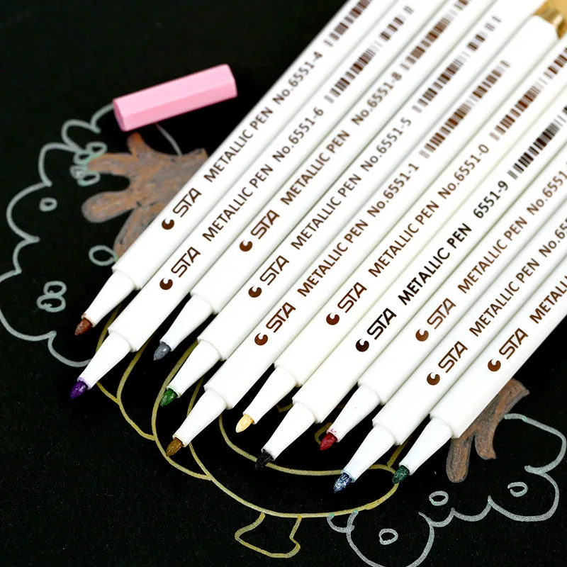 STA 10 цветов металлический маркер Diy Скрапбукинг ремесла мягкая кисть Ручка художественный маркер для канцелярских принадлежностей школьные принадлежности