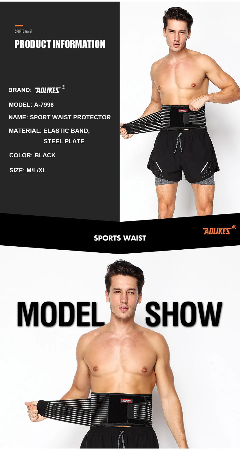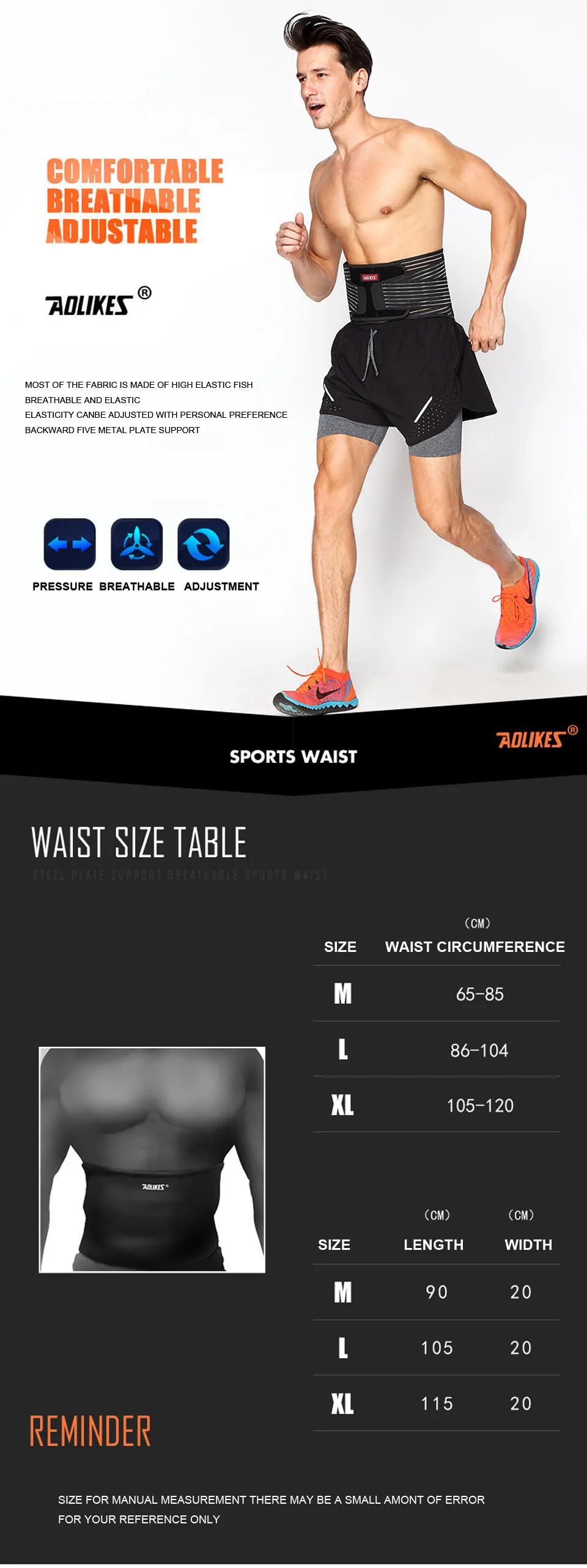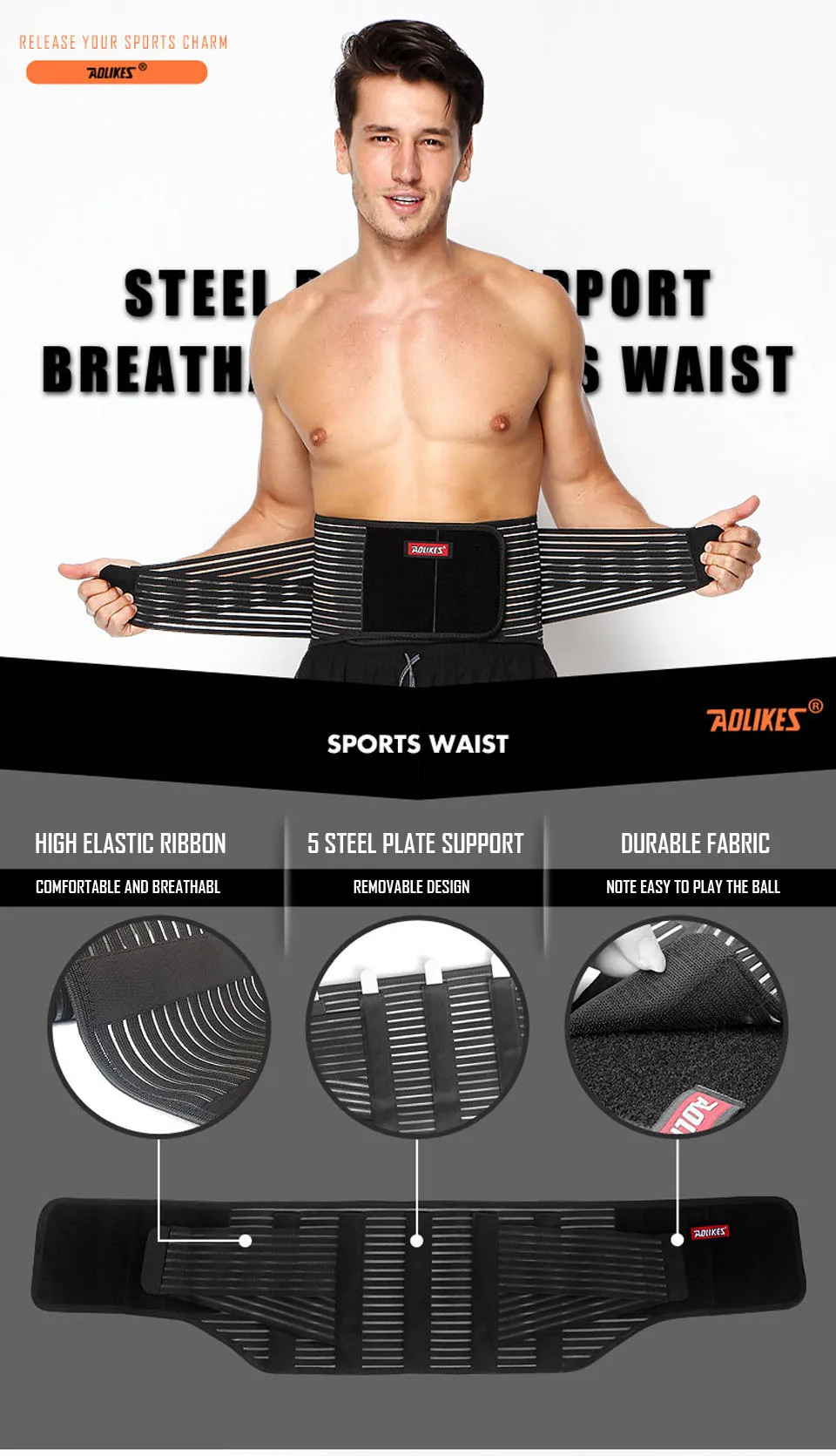 Поясничный фиксатор AOLIKES, высокоэластичная дышащая сетка, стальной фиксатор для поясницы, поддержка спины, бодибилдинг, 1 шт.