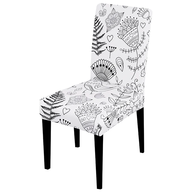 Черно-белый чехол для стула с цветочным принтом, универсальный разм...