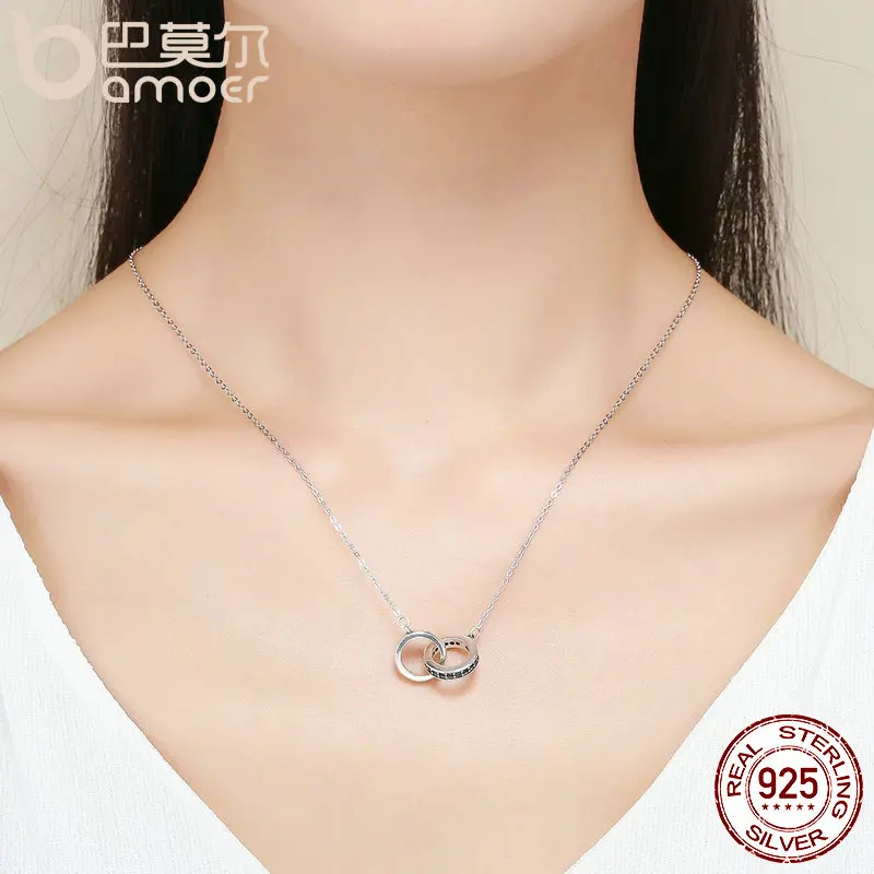 BAMOER подлинное Стерлинговое Серебро 925 пробы круг в круг черный кубический кулон ожерелья для женщин Стерлинговое серебро ювелирные изделия подарок SCN147