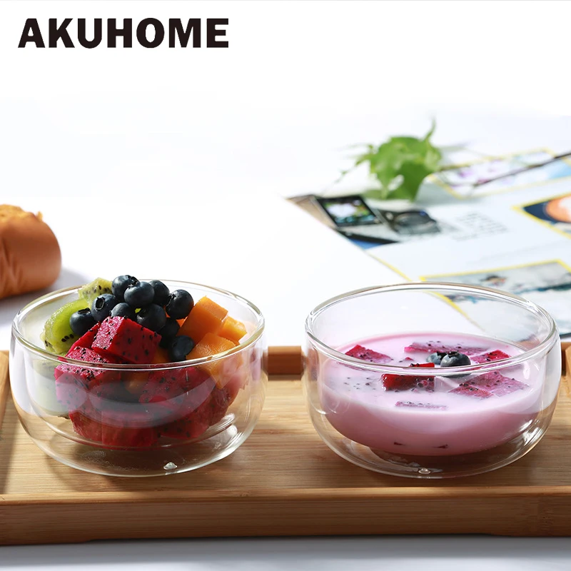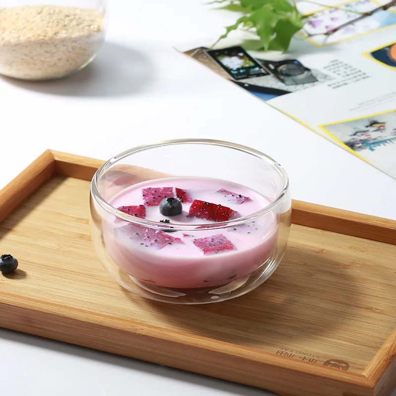 1 шт., двухслойная прозрачная стеклянная чаша, термостойкая посуда для салата, мороженого