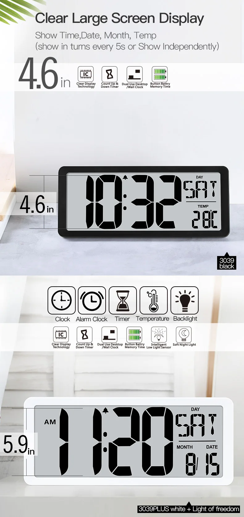 Большие цифровые настенные часы TXL, настенные часы в современном стиле для дома, винтажные цифровые умные часы с арабскими цифрами, настенные часы с ночником