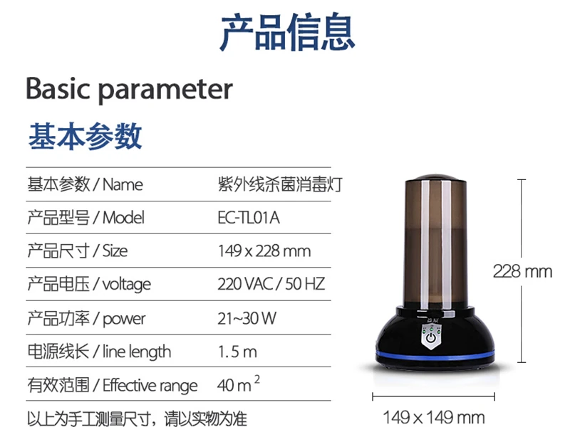 2. УФ-лампа на основе озона производит озон, когда он работает. Озон может стерилизовать места, где ультрафиолетовые лучи не могут достигать, но Озон вреден для человеческого организма. После дезинфекции, через 30-45 минут вентиляции, человек может войти в комнату. Для дезинфекции шкафов рекомендуется использовать озоновые лампы.