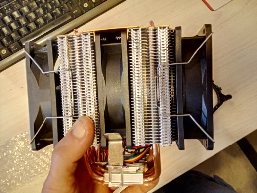 Кулер нормальный. Достаточно легкий. Площадка под камень идеальная-ровная. Упакован на совесть. Один недостаток: я брал с двумя пропеллерами, которые соединены в один разъем-пин, т.е. если будет желание снять один вентиль, то придется обрезать от него провод.