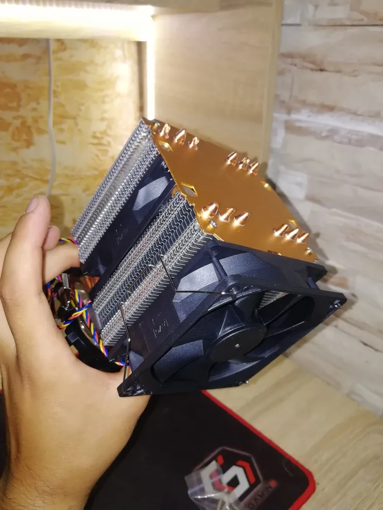Доставка очень быстрая, от заказа до получения прошло меньше десяти дней. Все как в описании, у меня с одним вентилятором справляется с E2689 v1 - достаточно горячий процессор, но и он более 50*С редко нагревается. Одно замечание - шумноват, хотя на полных оборотах практически не работает, обычно 1200-1400 оборотов. Не знаю как он с тремя шумит, а может наоборот. В целом очень достойный прибор.